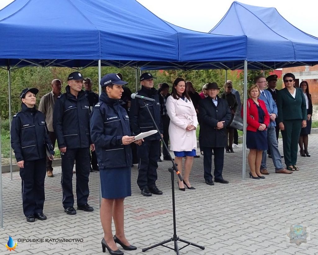 Klucze do posterunku Policji i nowych radiowozów, kierownikowi jednostki mł. asp. Grzegorzowi Galarowi wręczył Zastępca Dyrektora Biura Logistyki Komendy Głównej Policji mł. insp. Katarzyna Anioł-Olejnik wraz z Komendantem Wojewódzkim Policji w Opolu nadinsp. Jarosławem Kaletą.