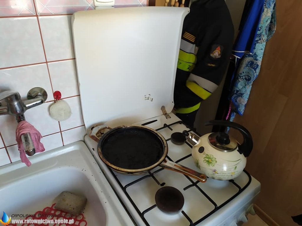 Przyczyną silnego zadymienia była przypalona potrawa na kuchence.