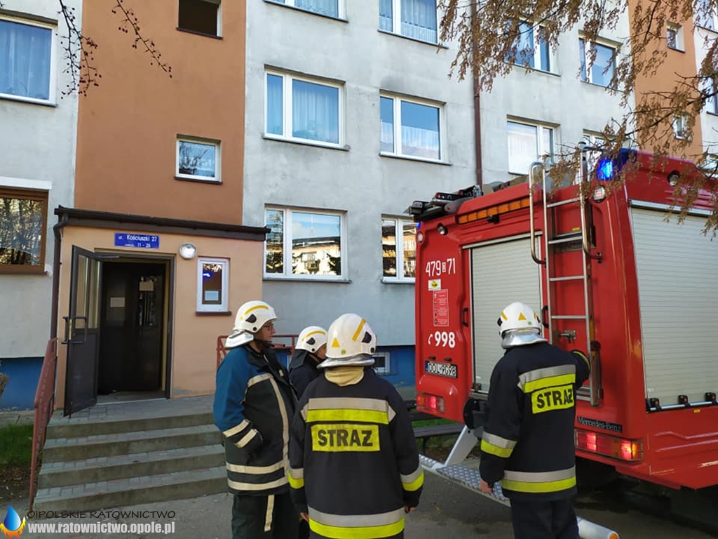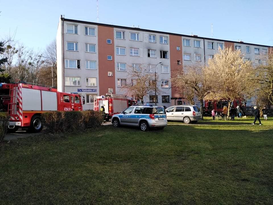 O godzinie 11:38 do dyżurnego Stanowiska Kierowania KP PSP w Oleśnie wpłynęło zgłoszenie o pożarze mieszkania na trzecim piętrze w budynku wielorodzinnym przy ulicy Kościuszki w Praszce.