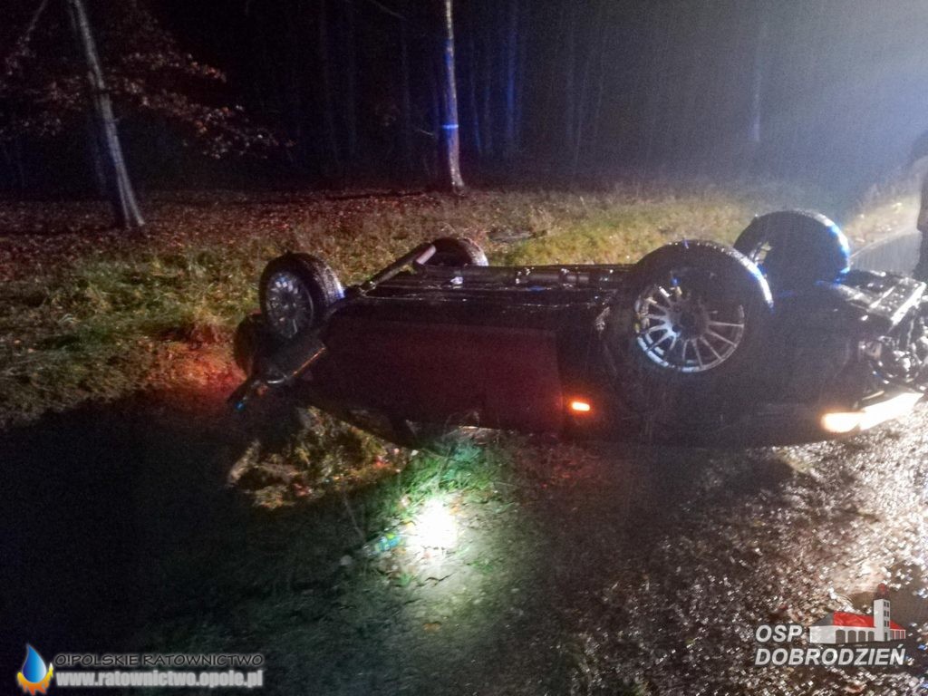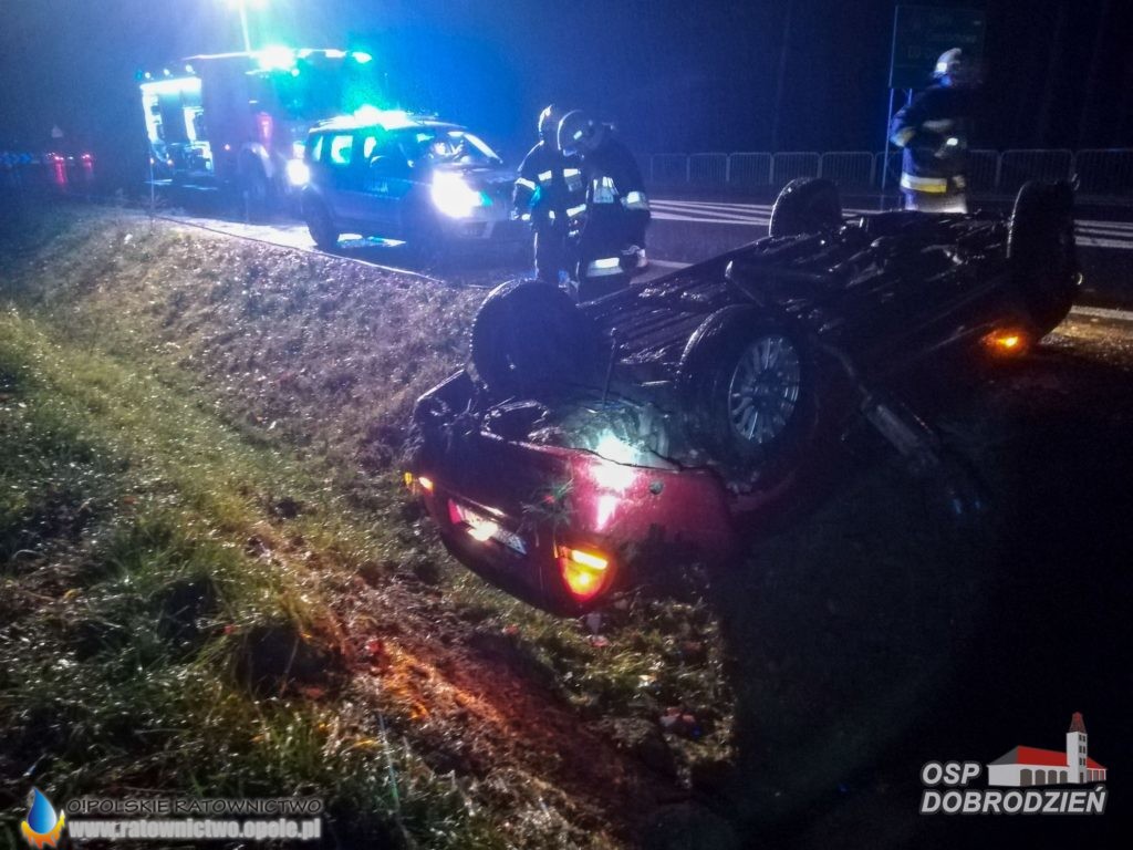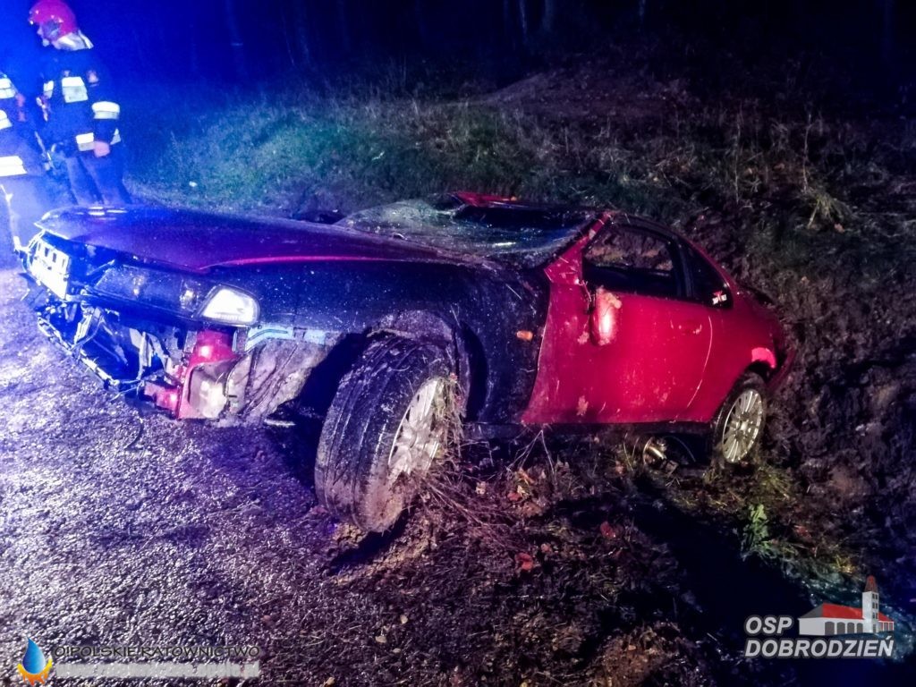 Kierowca samochodu osobowego stracił panowanie nad pojazdem i dachował poza jezdnią.