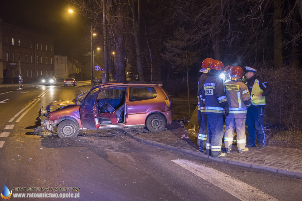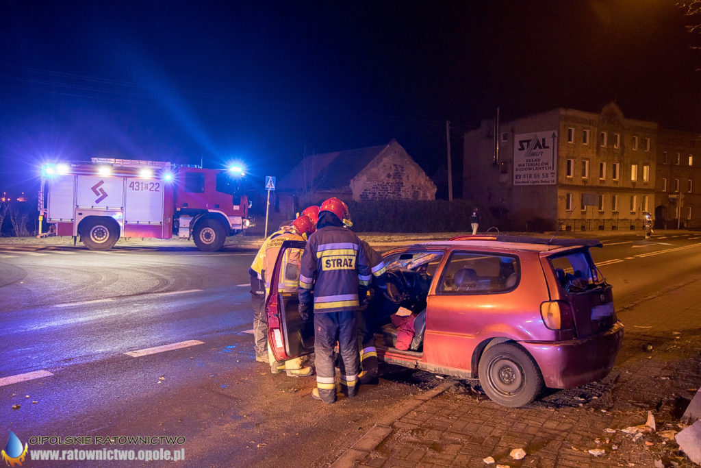 W piątek 24 stycznia około godziny 21:30 do dyżurnego kluczborskiej straży pożarnej wpłynęło zgłoszenie wypadku drogowym z udziałem jednego pojazdu na skrzyżowaniu ulicy Wołczyńskiej, Robotniczej oraz Młyńskiej.