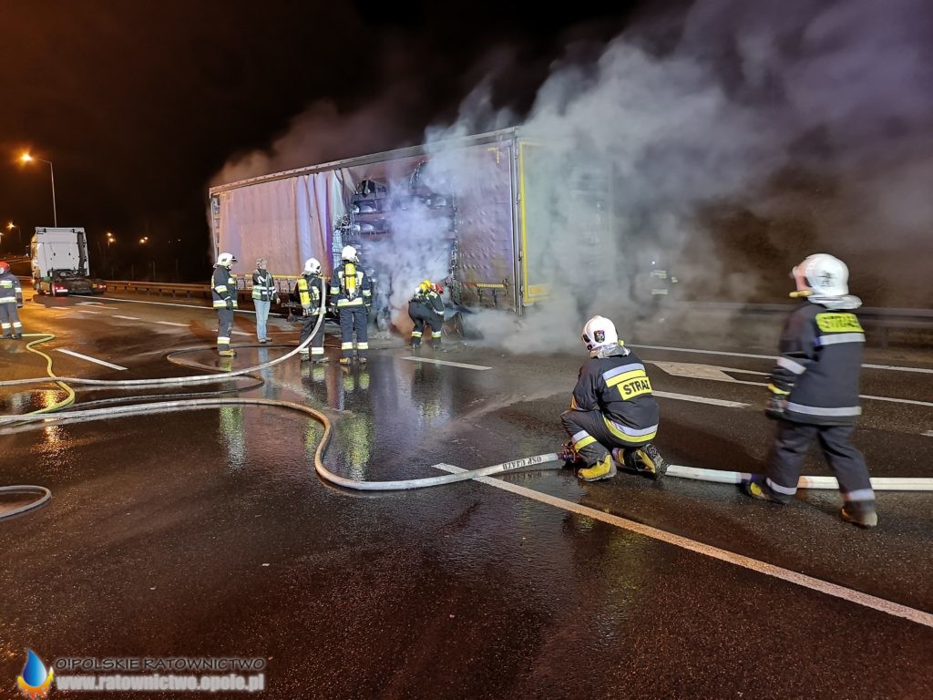 We wtorek 4 lutego o godzinie 19:17 służby ratownicze otrzymały zgłoszenie o pożarze naczepy samochodu ciężarowego na 279 kilometrze autostrady A4 w kierunku Wrocławia.