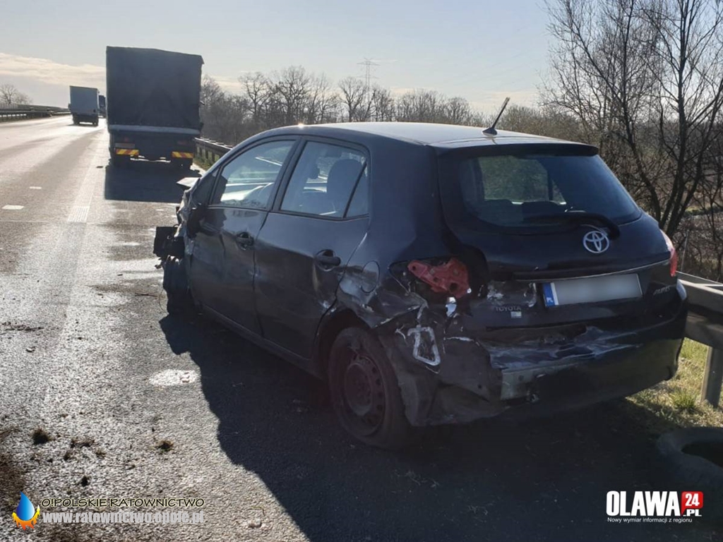Do pierwszego zdarzenia doszło kilka minut po godzinie 8:00 na wysokości MOP Oleśnica Mała. Samochód osobowy uderzył w barierki energochłonne i zablokował jeden z pasów jezdni.