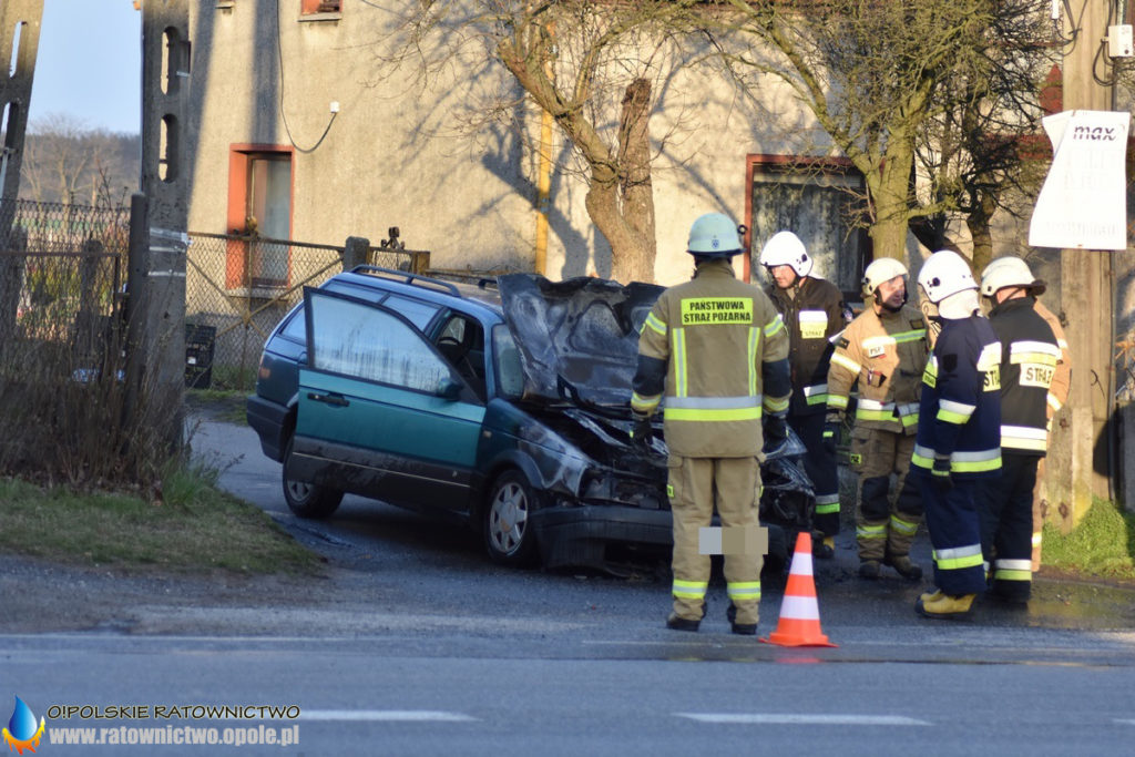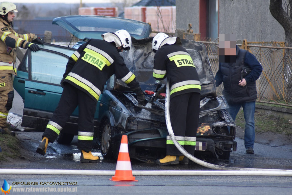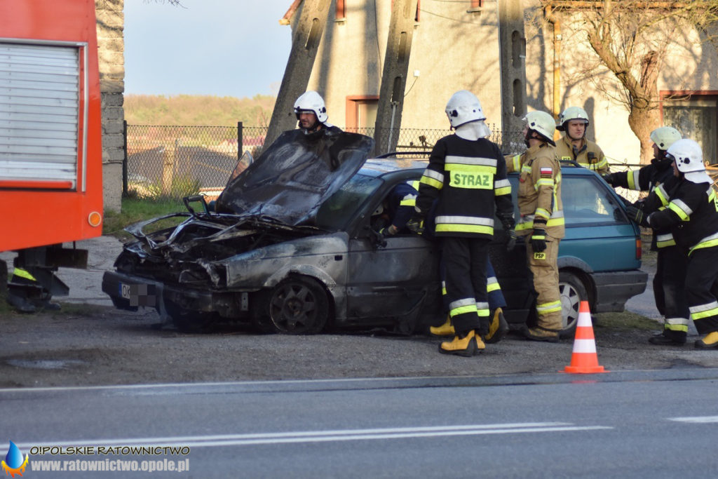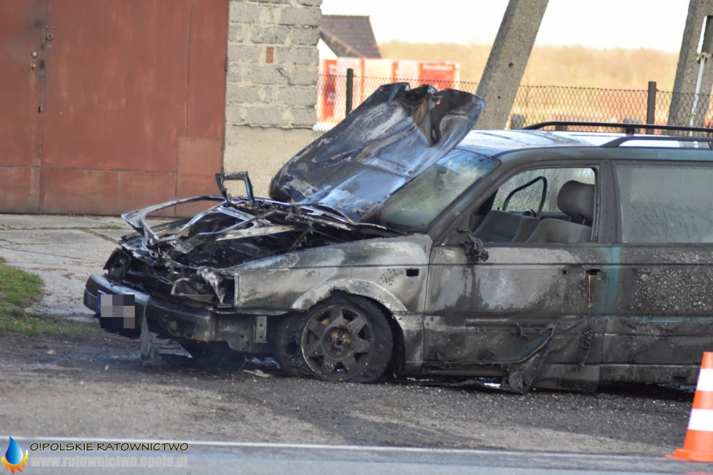 Na skrzyżowaniu drogi krajowej nr 45 oraz ulicy Naczysławskiej podczas jazdy zapalił się Volkswagen Passat, którym jechała jedna osoba. Kierujący opuścił bezpiecznie pojazd przed przybyciem straży pożarnej.