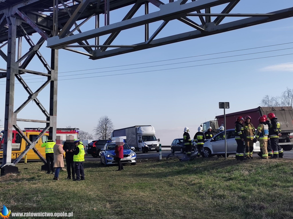 Trzy pojazdy zderzyły się na skrzyżowaniu drogi krajowej numer 45 i drogi wojewódzkiej numer 429 pod taśmociągiem w miejscowości Zimnice Małe.
