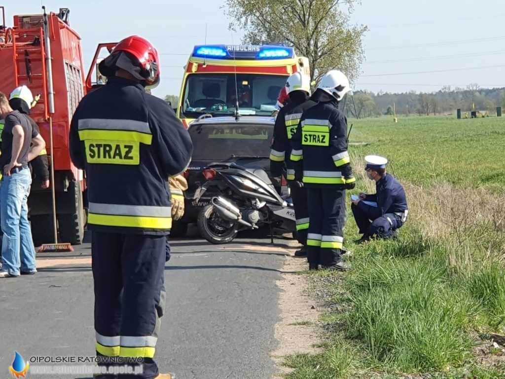 Kierowca volkswagena passata po godzinie 16 cofając na prostej drodze uderzył w motorowerzystę. W wyniku zdarzenia poszkodowany został kierujący motorowerem.
