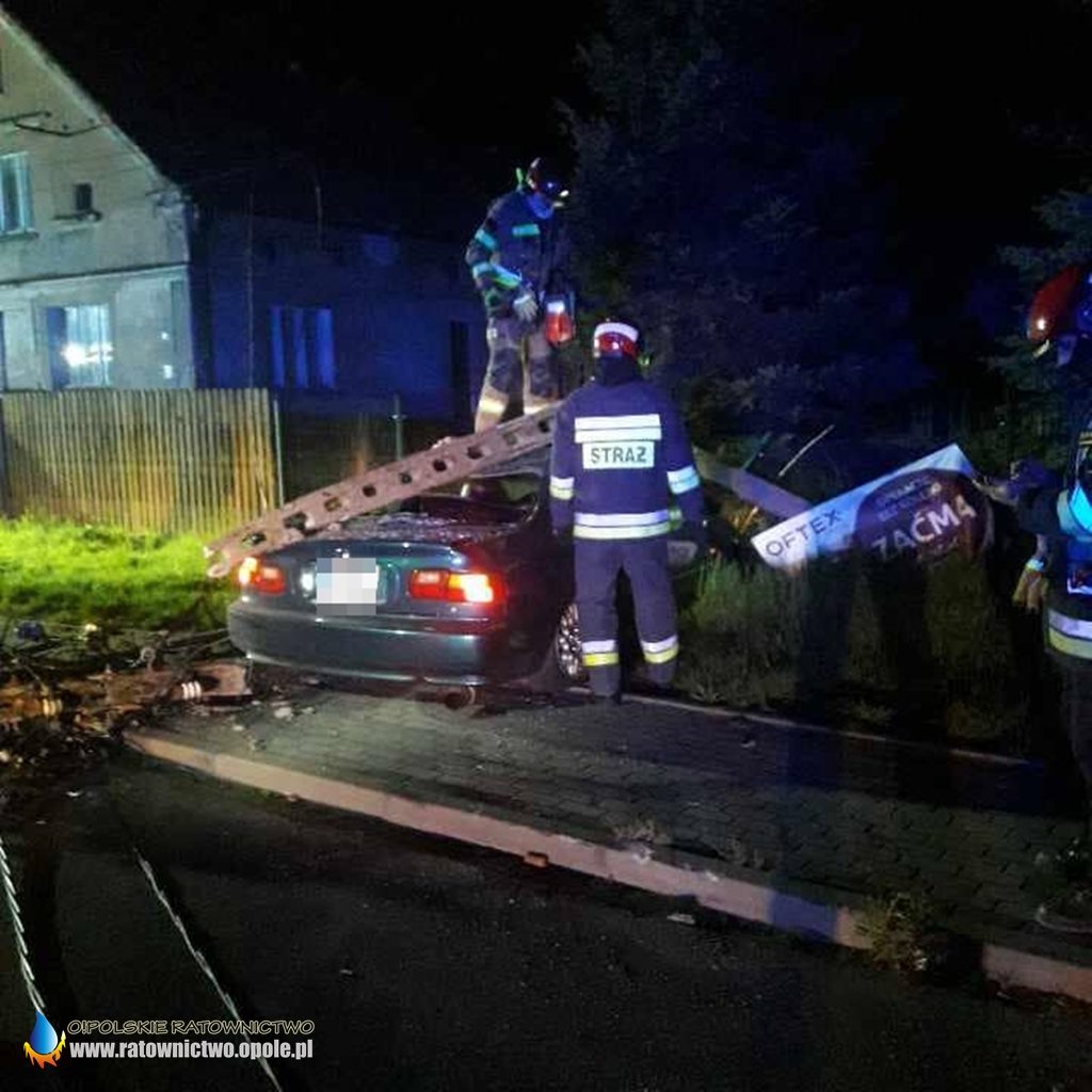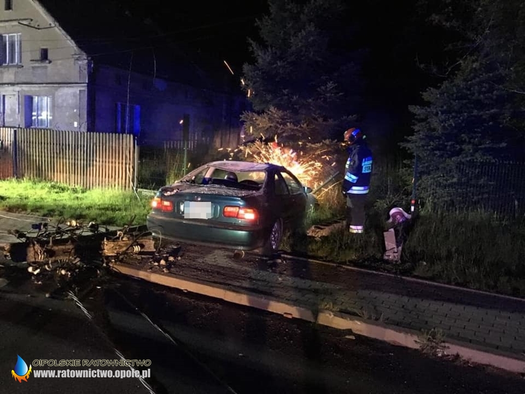 Kierujący hondą na zakręcie stracił panowanie nad pojazdem i uderzył w słup, który następnie się złamał i przewrócił na samochód.