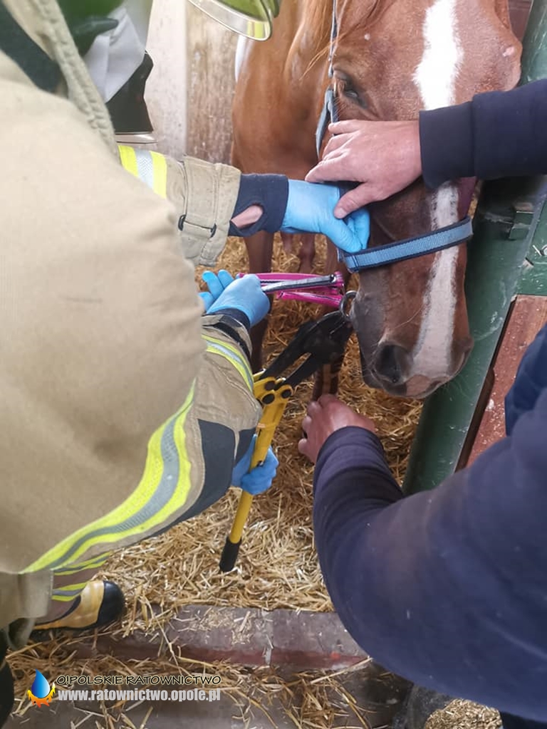 – Po przybyciu na miejsce ustalono, że obsługa ośrodka podjęła już próby usunięcia karabińczyka, jednak nie zakończyły się one powodzeniem m.in. z powodu braku specjalistycznych narzędzi. Również pierwsze nasze próby zakończyły się niepowodzeniem. Karabińczyk znajdujący się w okolicach brody to bardzo delikatne i unerwione miejsce konia. Przy próbach cięcia zwierzę się płoszyło, co uniemożliwiało skuteczne działanie, ponadto starano się to zrobić w jak najbardziej komfortowych bezstresowych warunkach dla konia. W związku, z czym podjęto decyzję o podaniu środków uspokajających, które zaaplikował weterynarz. W rezultacie koń się na tyle uspokoił, że udało się przeciąć karabińczyk i po chwili całkowicie go usunąć – informują strażacy z Polskiej Cerekwi.
