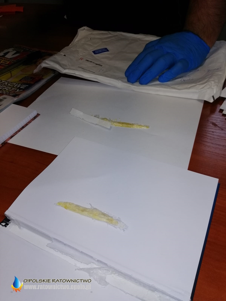 Funkcjonariusze Aresztu Śledczego w Opolu udaremnili przemyt syntetycznej marihuany. Substancję w formie kryształków ukryto w grzbietach 5 zeszytów oraz nasączono nią trzy koperty adresowane do skazanych. Wartość zarekwirowanych ponad 6150 porcji została oszacowana na 250 tys. zł