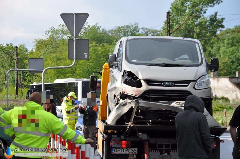 Tuż za przejazdem doszło do zderzenia samochodu typu bus z samochodem osobowym. Łącznie pojazdami podróżowały cztery osoby.