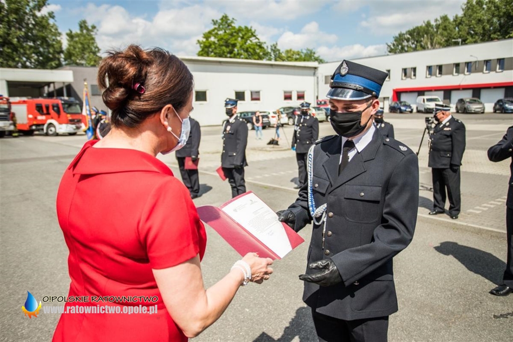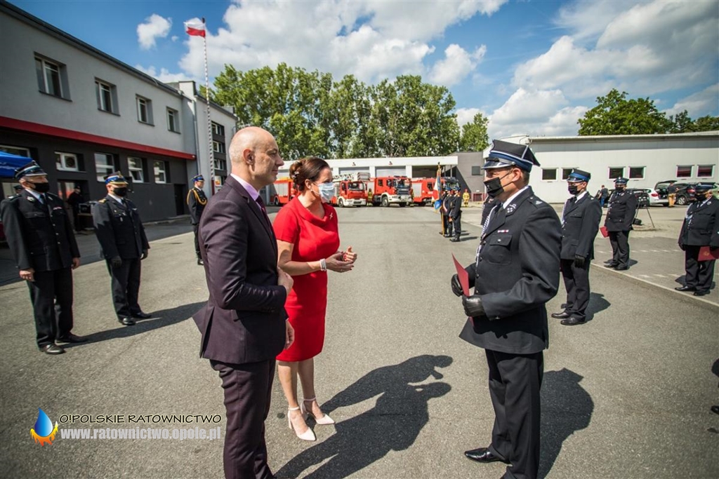 16 czerwca 2020 r. na placu wewnętrznym Komendy Wojewódzkiej Państwowej Straży Pożarnej w Opolu odbyła się uroczysta zbiórka, podczas której przekazano promesy na zakup samochodów ratowniczo-gaśniczych dla 17 Ochotniczych Straży Pożarnych z woj. opolskiego.