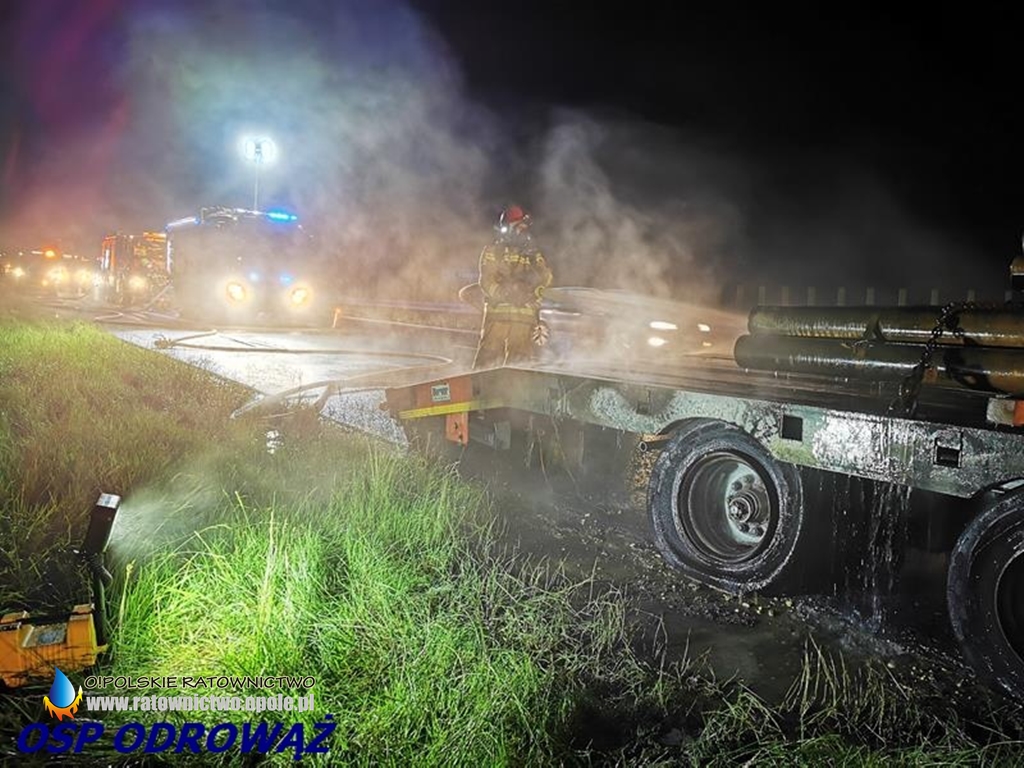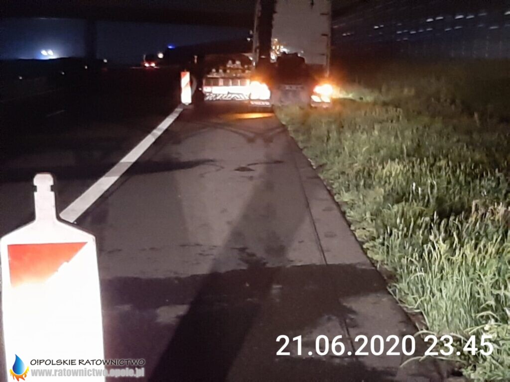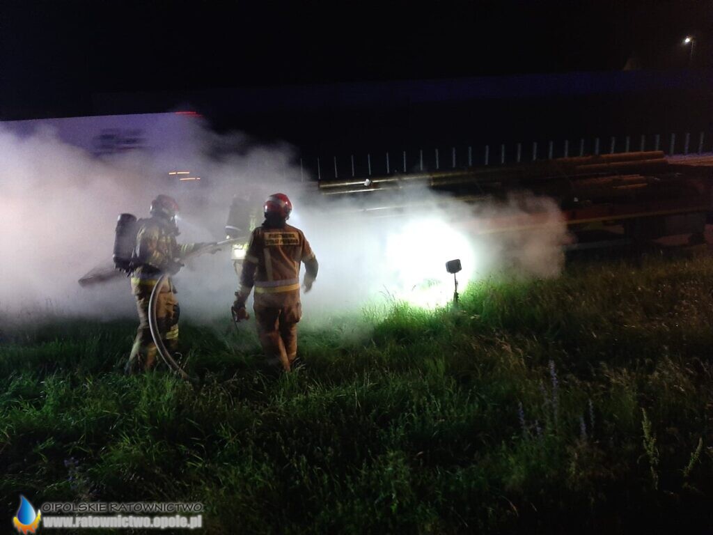 W niedzielę 21 czerwca kilka minut przed godziną 23 do dyżurnego Stanowiska Kierowania KP PSP w Krapkowicach wpłynęło zgłoszenie o pożarze naczepy samochodu ciężarowego na 248 kilometrze autostrady A4 na pasie w kierunku Wrocławia.