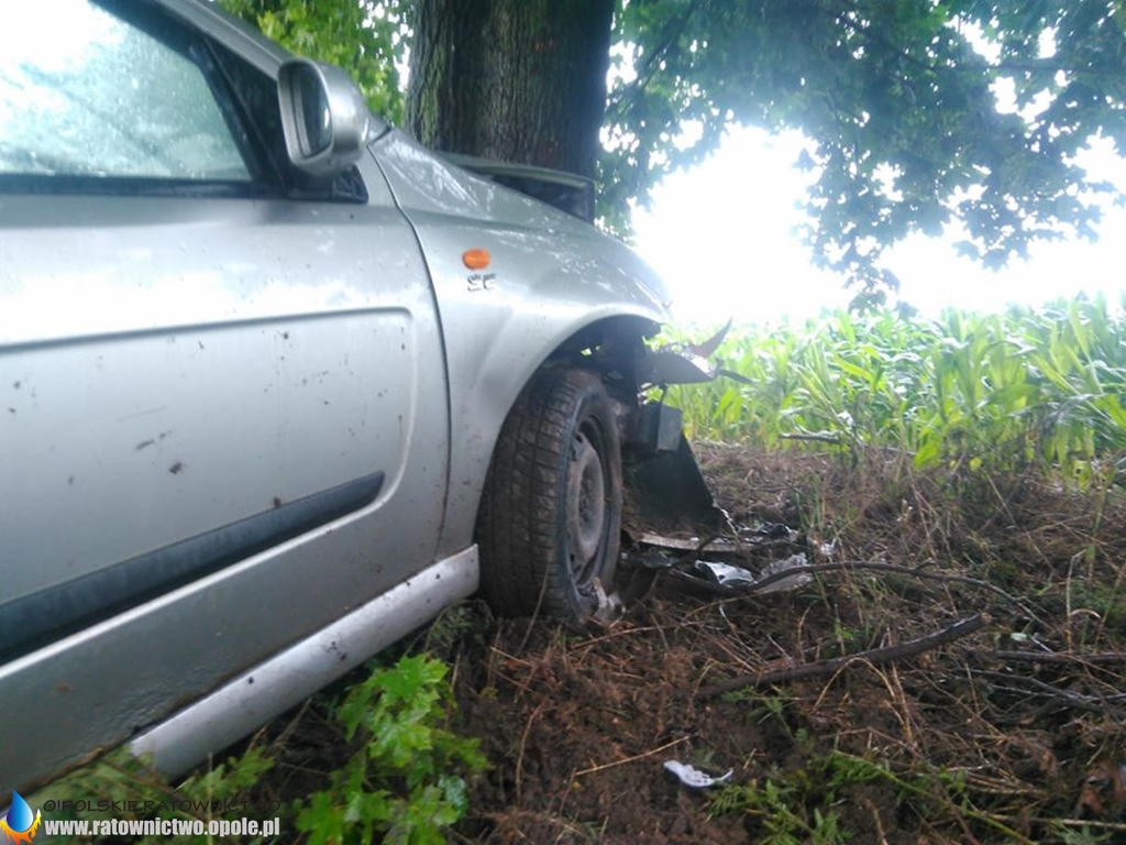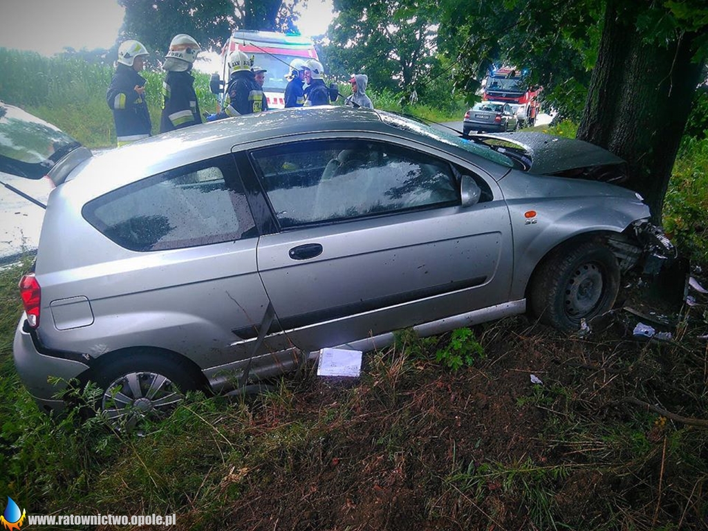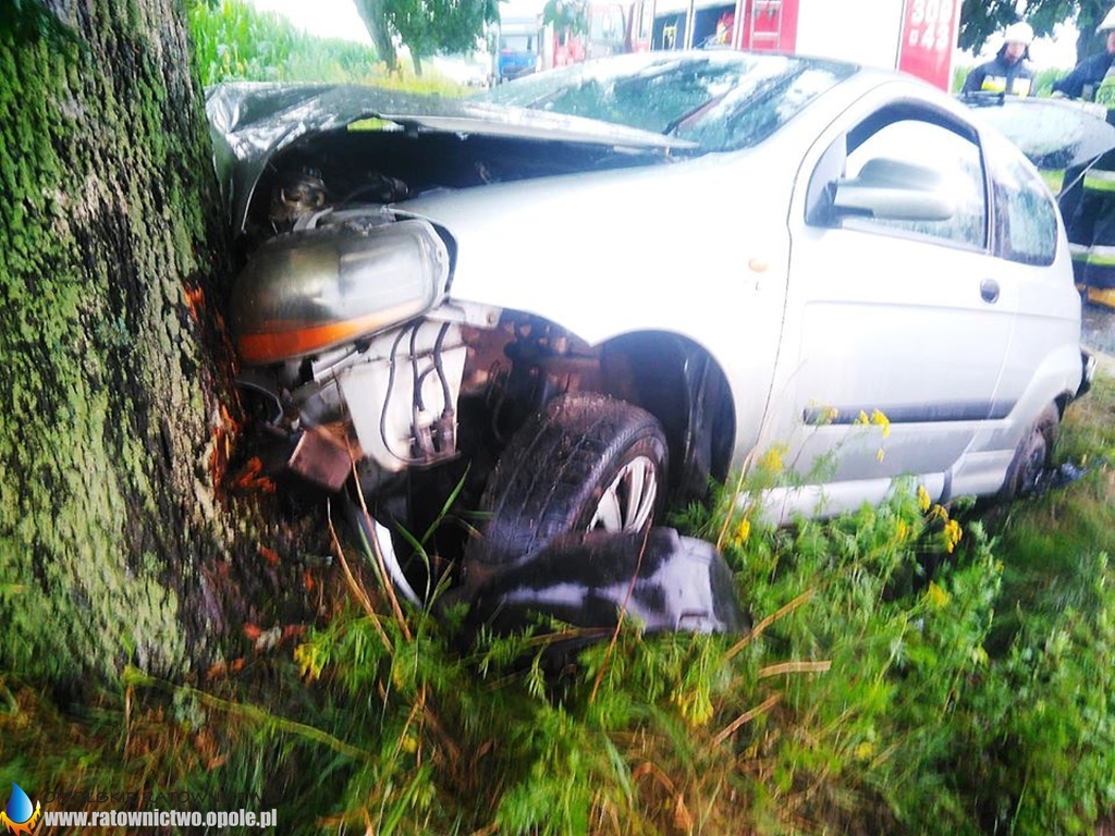 Dwie osoby poszkodowane w tym dziecko po uderzeniu Chevroleta w drzewo