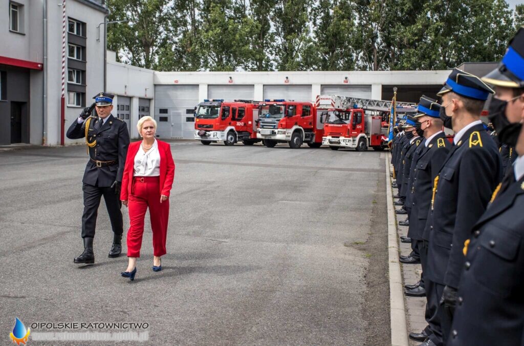 Uroczysta zbiórka odbyła się w obecności Pani Teresy Barańskiej Wicewojewody Opolskiego oraz Komendantów Powiatowych i Komendanta Miejskiego PSP województwa opolskiego.