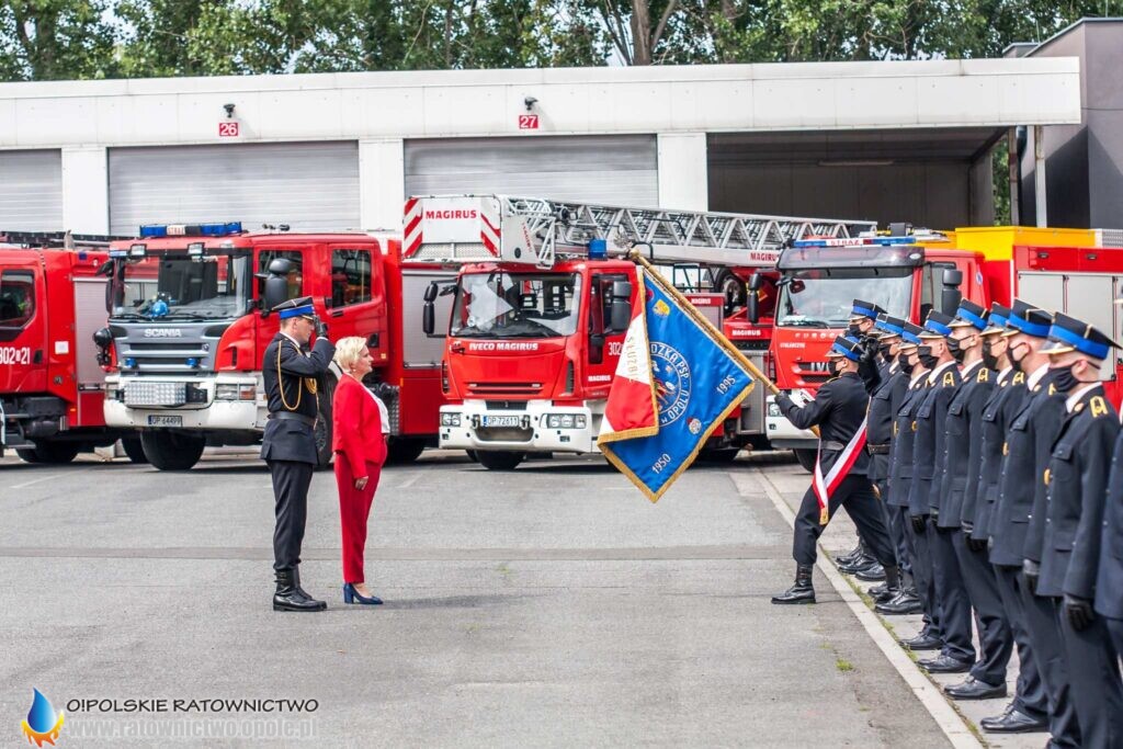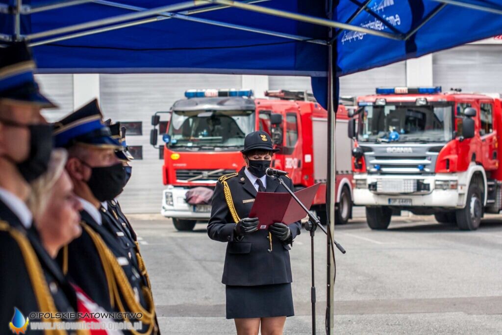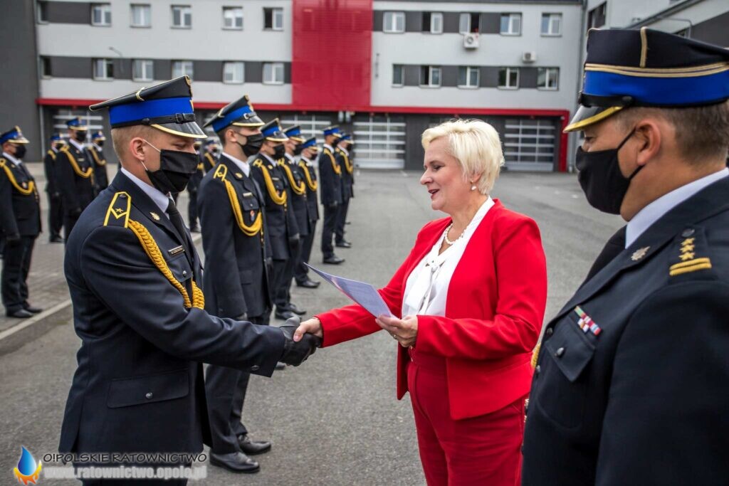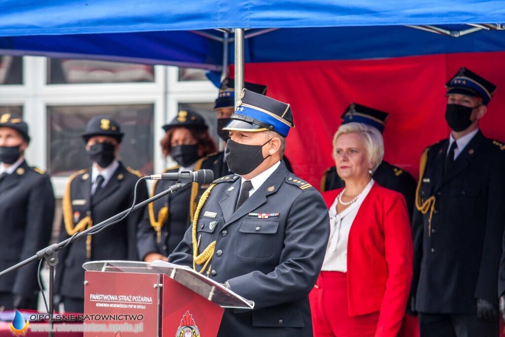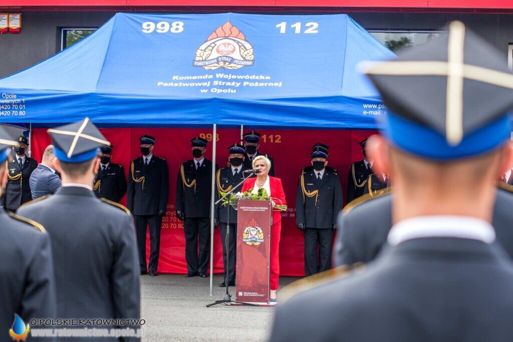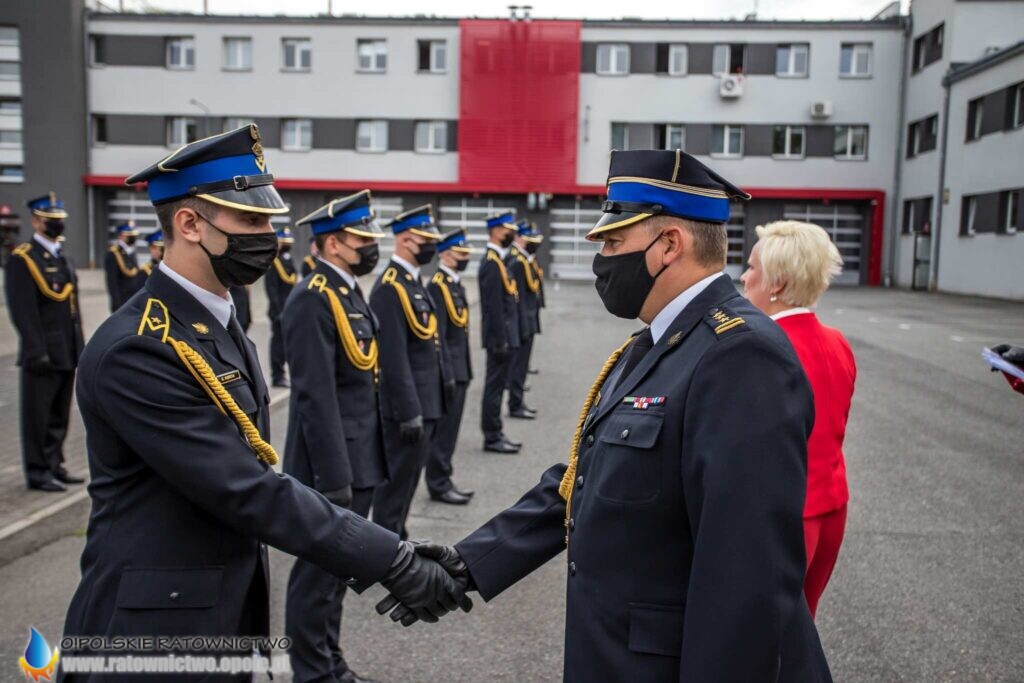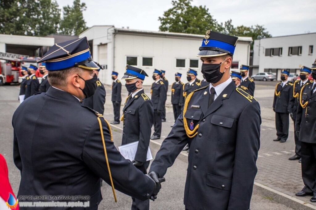 „Dzisiejsza uroczystość jest wydarzeniem szczególnym dla całego środowiska pożarniczego. To podsumowanie wielu wyrzeczeń i samozaparcia, jakie okres nauki niejednokrotnie od Was wymagał – musieliście łączyć życie prywatne, służbowe z edukacją w szkole pożarniczej, czego zwieńczeniem jest dziś nadanie stopnia młodszego aspiranta” – mówił st. kpt. Krzysztof Kędryk Opolski Komendant Wojewódzki PSP.