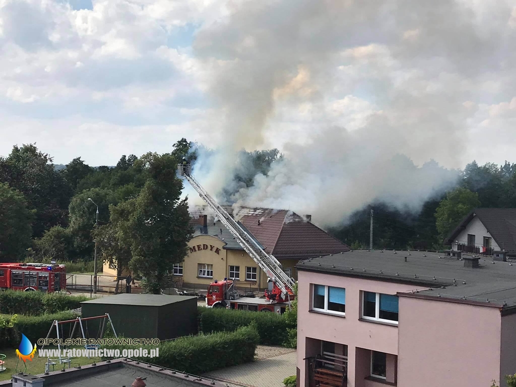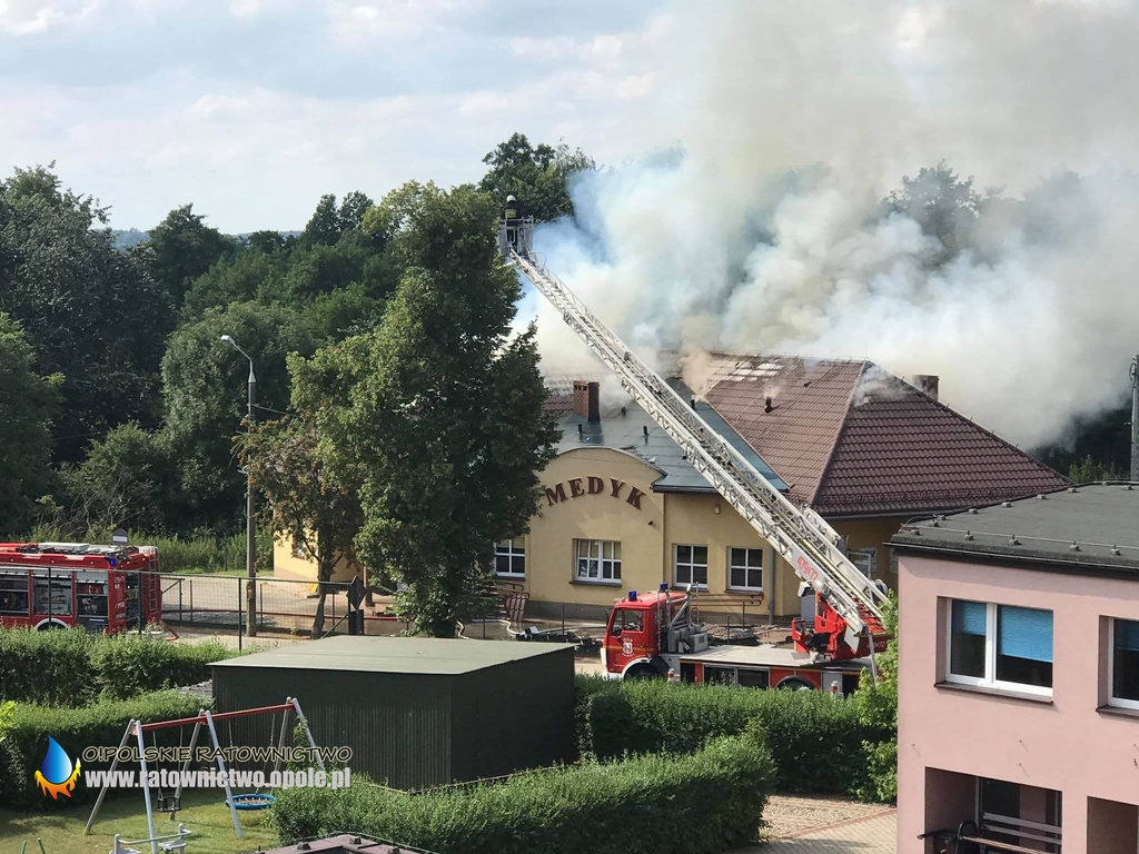 W środę 29 lipca o godzinie 15:23 do dyżurnego Stanowiska Kierowania KP PSP w Oleśnie wpłynęło zgłoszenie o pożarze dachu budynku przychodni lekarskiej „Medyk” przy ulicy Fabrycznej w Praszce.