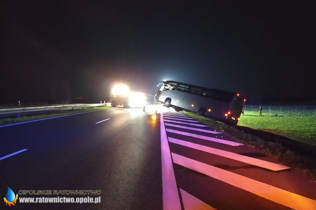 W poniedziałek 7 września o godzinie 21:10 służby ratunkowe w Brzegu otrzymały zgłoszenie o wypadku z udziałem autokaru na autostradzie A4 na wysokości miejscowości Czeska Wieś.