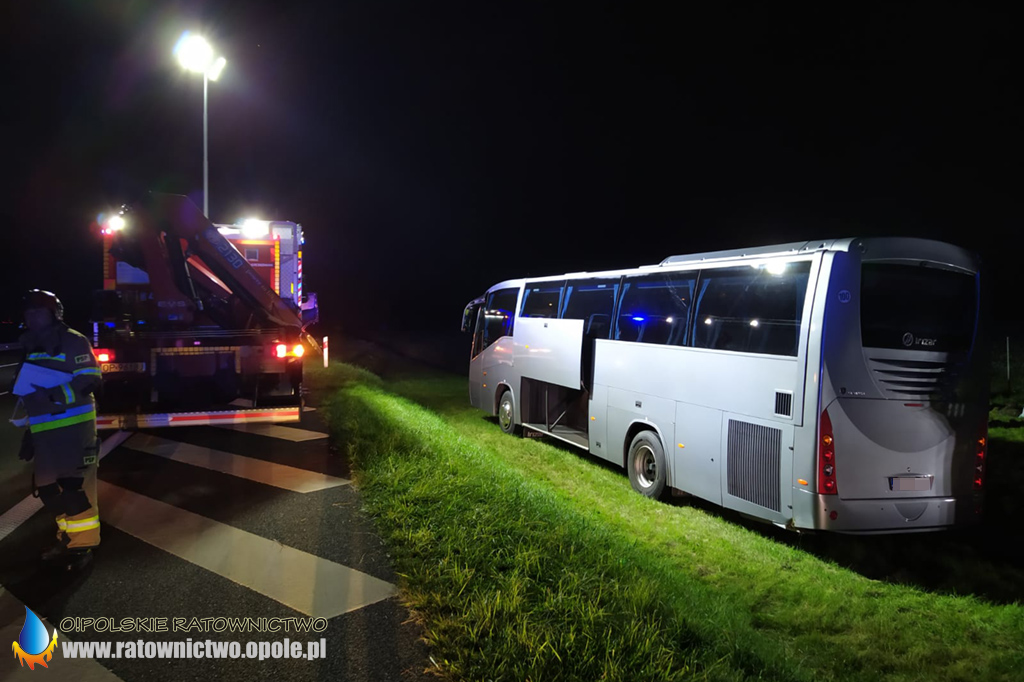Autobus jechał pasem w kierunku Katowic. Na 205 kilometrze 54-letni kierujący autokarem zjechał na pas awaryjny a następnie wjechał do rowu.