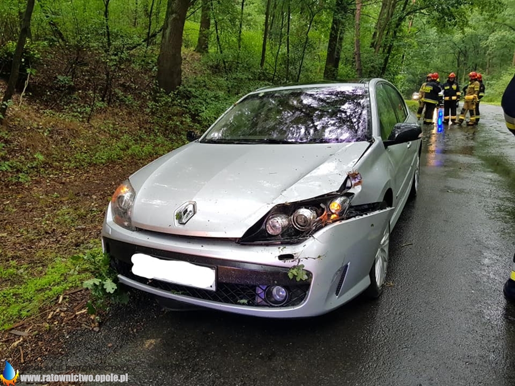 Jak wynika ze wstępnych ustaleń, na samochód osobowy marki Renault Laguna spadł konar drzewa, na szczęście kierujący pojazdem nie odniósł żadnych obrażeń.