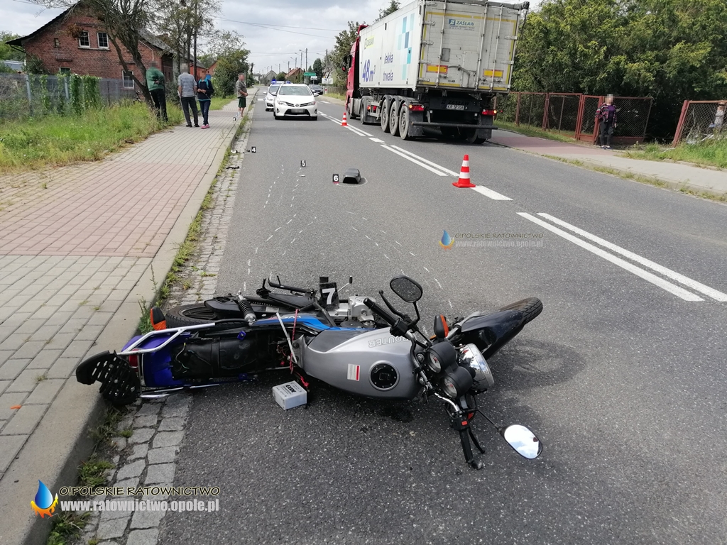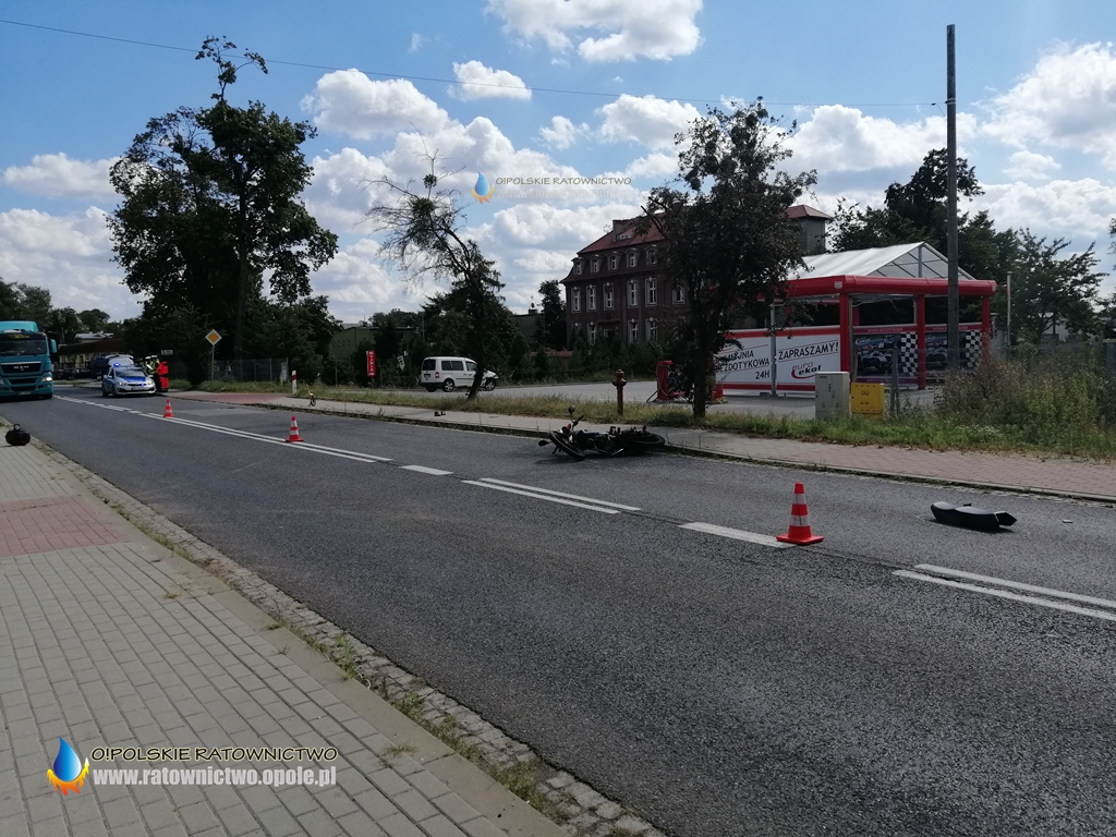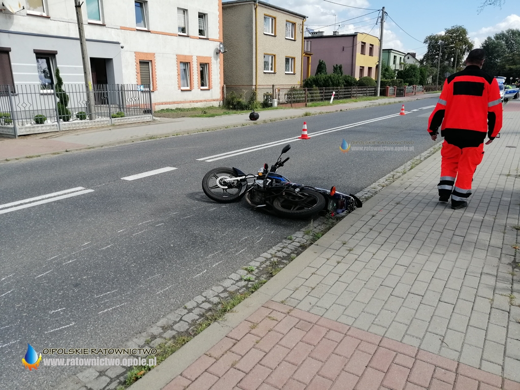 Wypadek na DK 42 w Wołczynie – kierujący jednośladem zabrany do szpitala