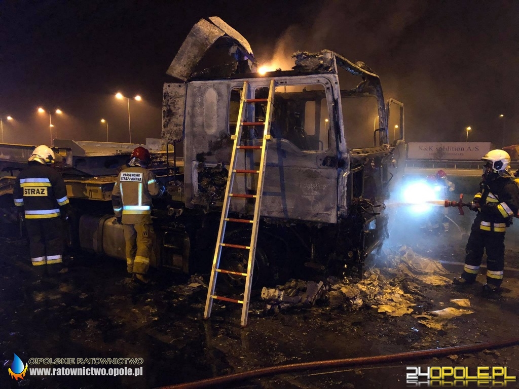W poniedziałek 9 listopada o godzinie 22:13 do straży pożarnej wpłynęło zgłoszenie o pożarze samochodu ciężarowego na 236 kilometrze autostrady A4 w kierunku Wrocławia.