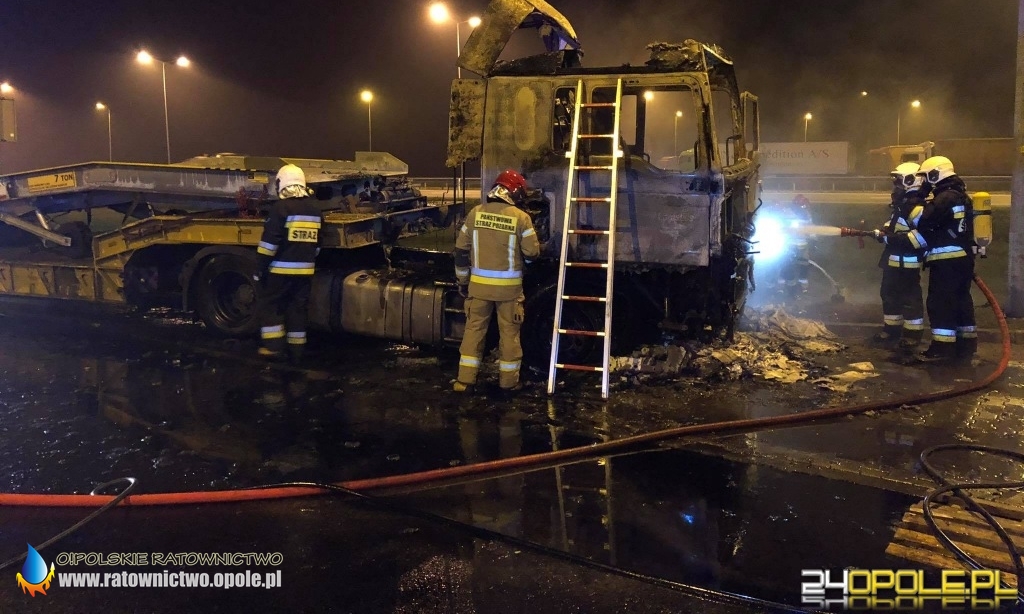 W poniedziałek 9 listopada o godzinie 22:13 do straży pożarnej wpłynęło zgłoszenie o pożarze samochodu ciężarowego na 236 kilometrze autostrady A4 w kierunku Wrocławia.