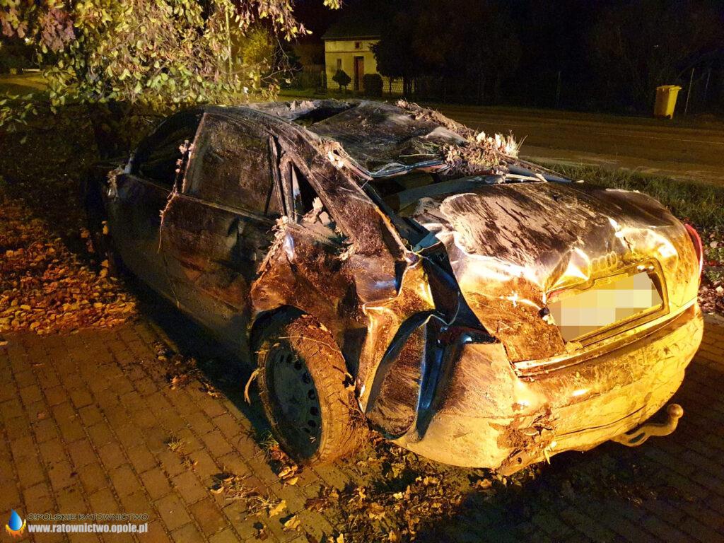 Samochodem podróżowały dwie osoby, które opuścił pojazd przed przybyciem służb — nic im się nie stało.