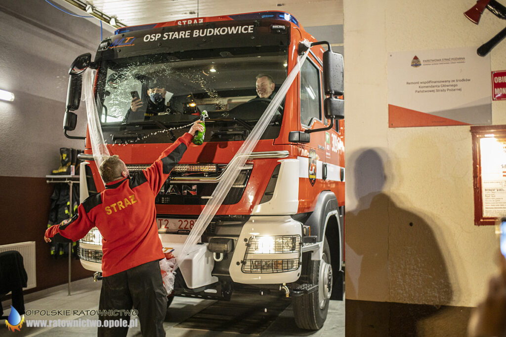 W piątek 20 listopada po godzinie 18 do OSP Stare Budkowice przyjechał nowy samochód ratowniczo gaśniczy Man TGM 13.290 4×4, który został zabudowany przez firmę MOTO-TRUCK z Kielc.