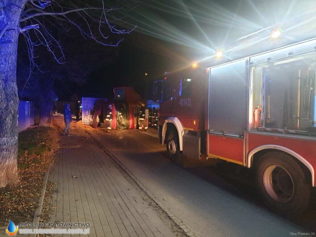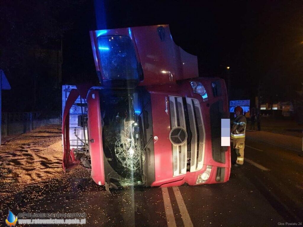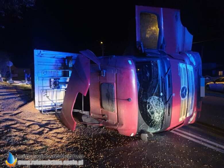 W wyniku zdarzenia poszkodowany został kierowca ciężarówki, jednak odmówił przewiezienia do szpitala.
