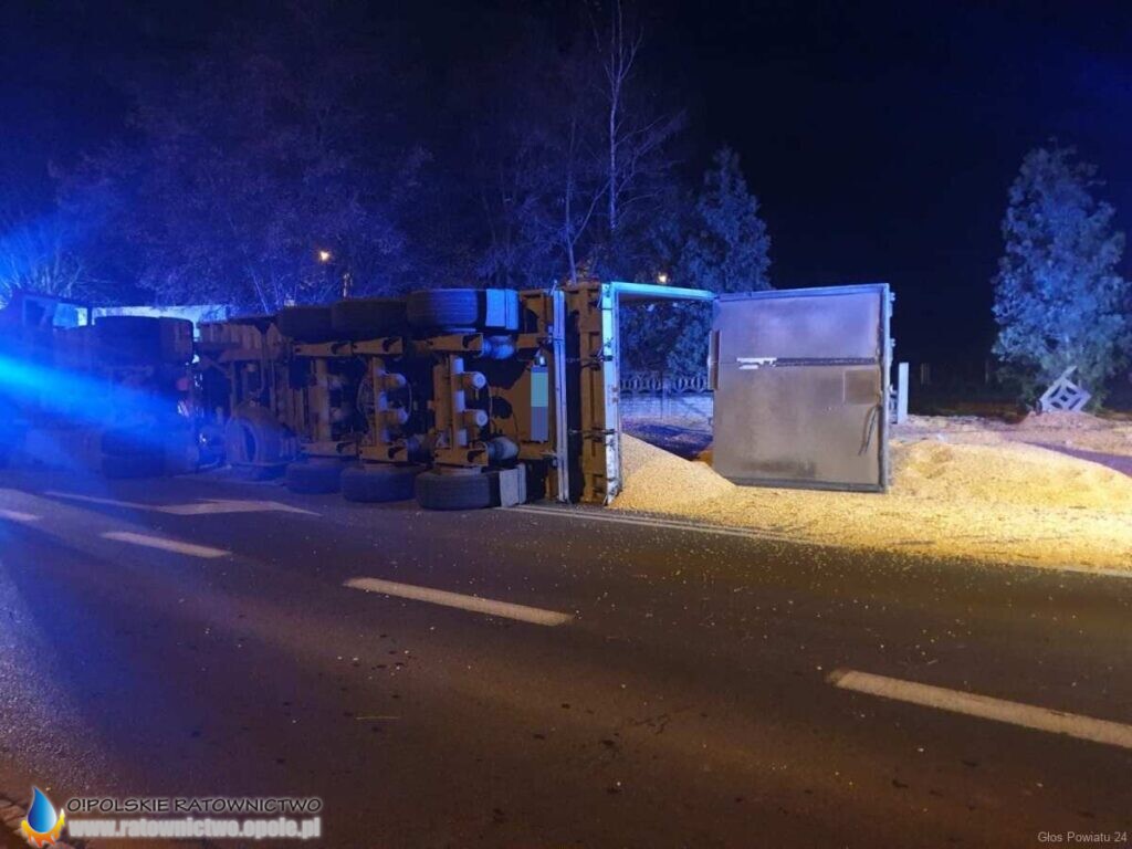 Kierowca ciągnika siodłowego marki Mercedes z naczepą przewożąc kukurydzę, w wyniku nadmiernej prędkości na łuku drogi stracił panowanie nad pojazdem. Kierowca przewrócił pojazd wraz z naczepą na wysokości remizy OSP Michałowice. Ładunek wysypał się na jezdnię.
