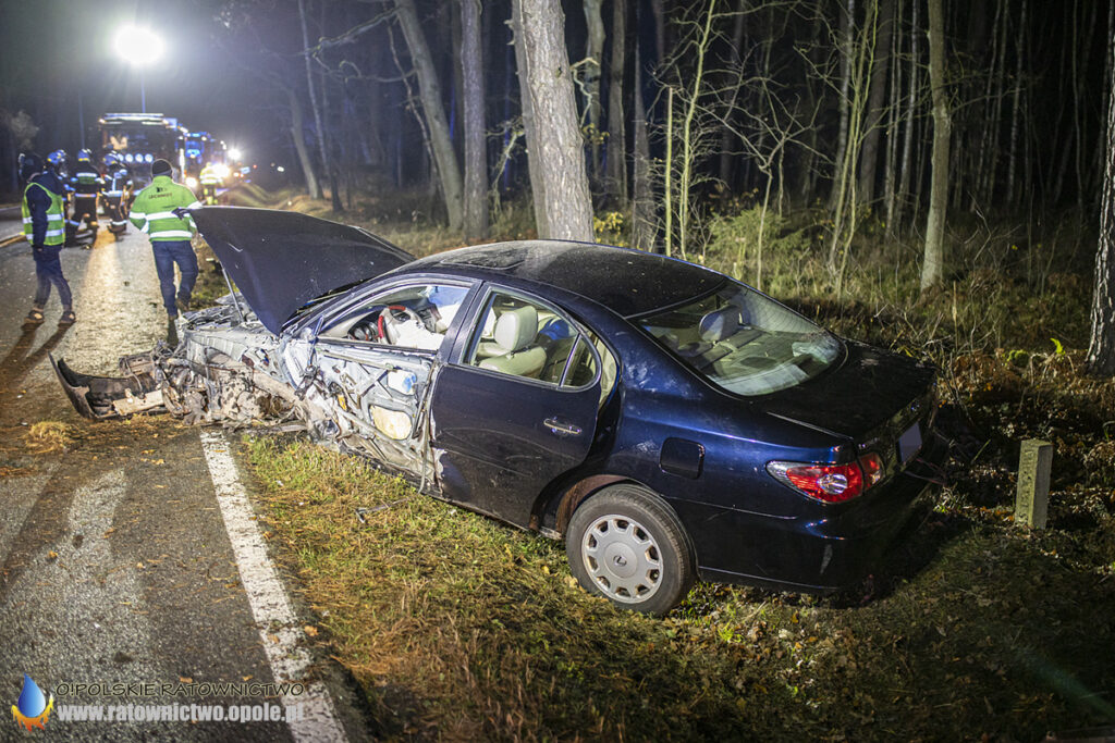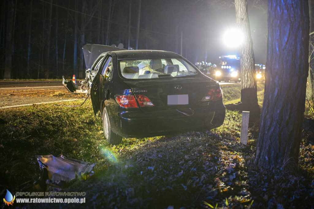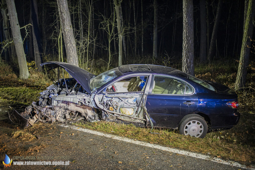 Wg wstępnych ustaleń, kierowca lexusa jadąc od strony Kluczborka, ściął zakręt, bokiem uderzył w opla insignię. Następnie zjechał do rowu, uderzył w drzewo i obrócił sie w kierunku przeciwnym do jazdy.