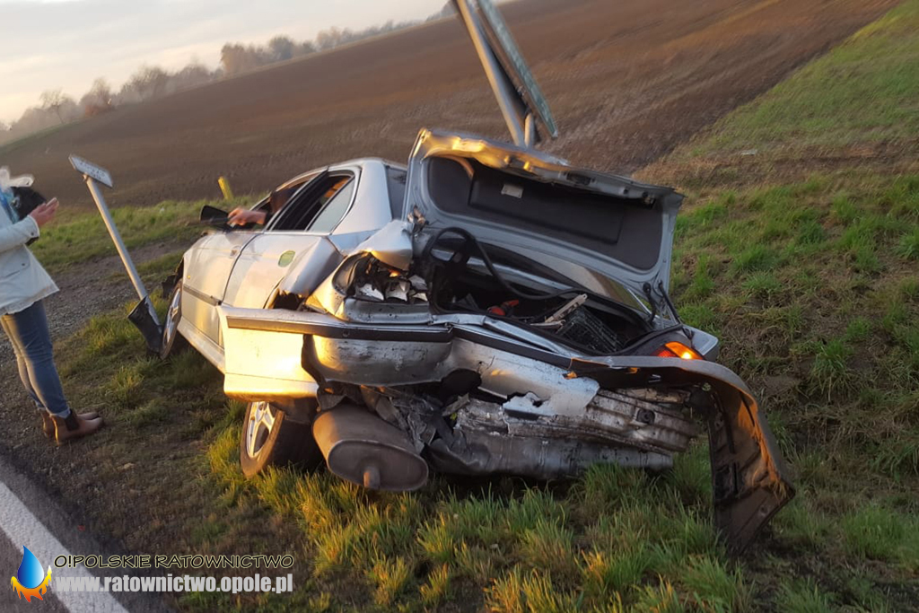 Po uderzeniu bmw zjechało do rowu i zatrzymało się na betonowym przepuście. Drugi uderzony pojazd także znalazł się po za drogą.