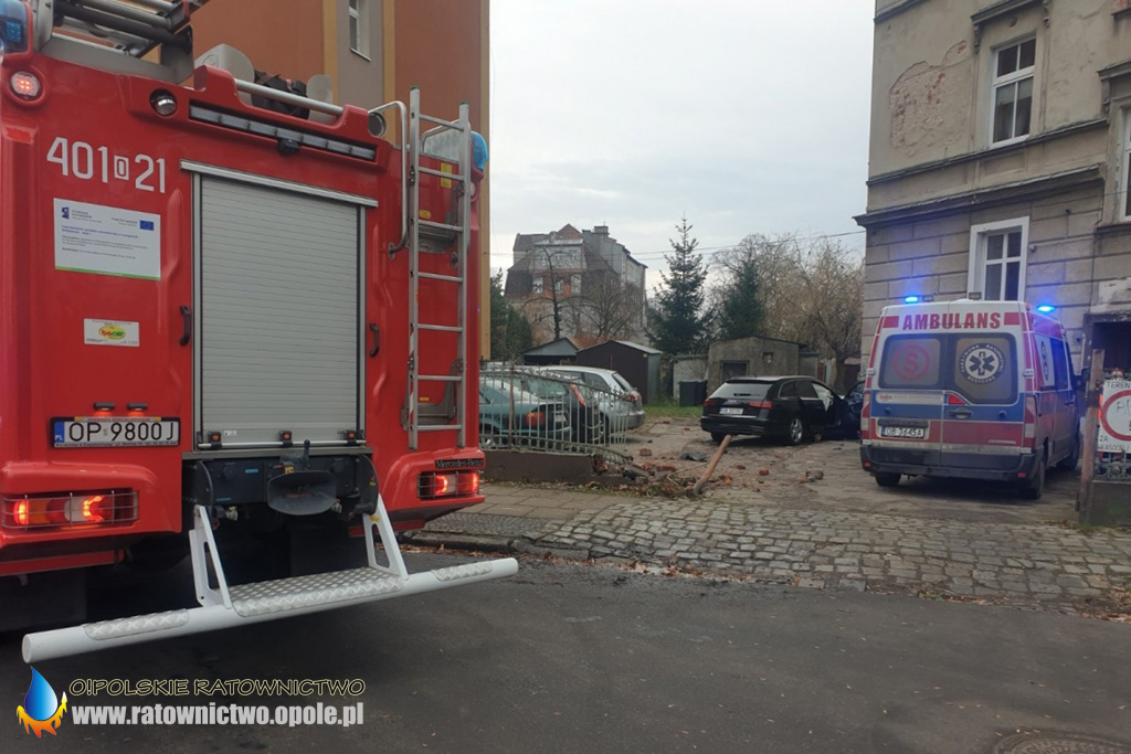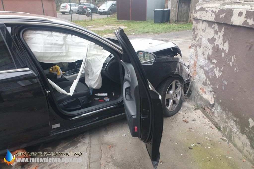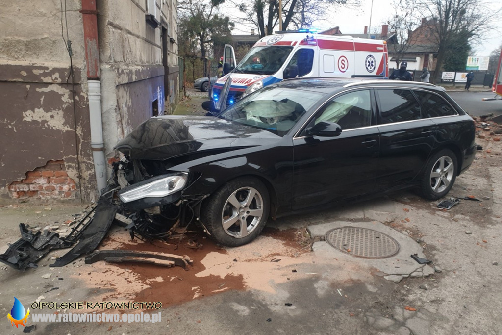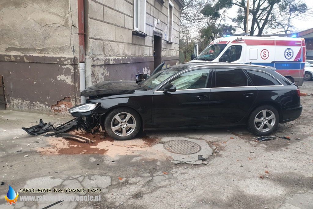 Kierujący audi staranował ogrodzenie i uderzył w budynek