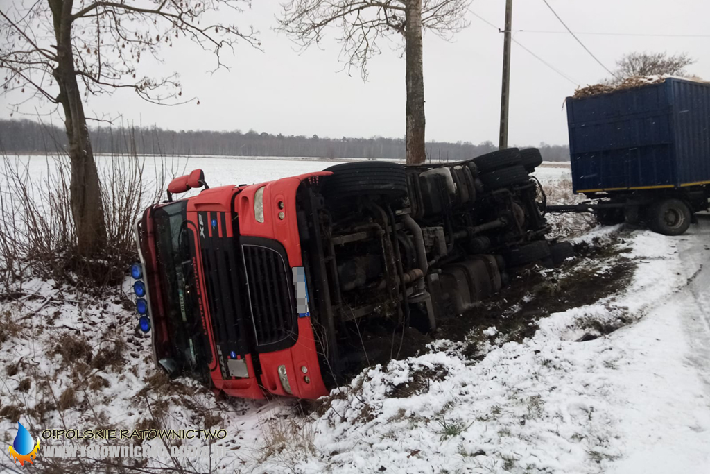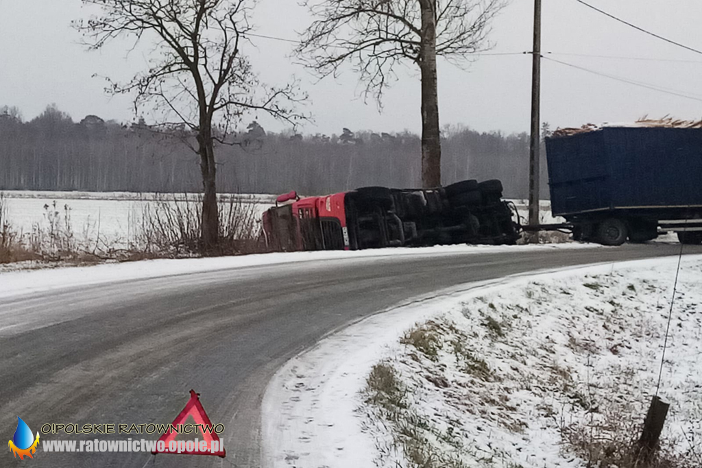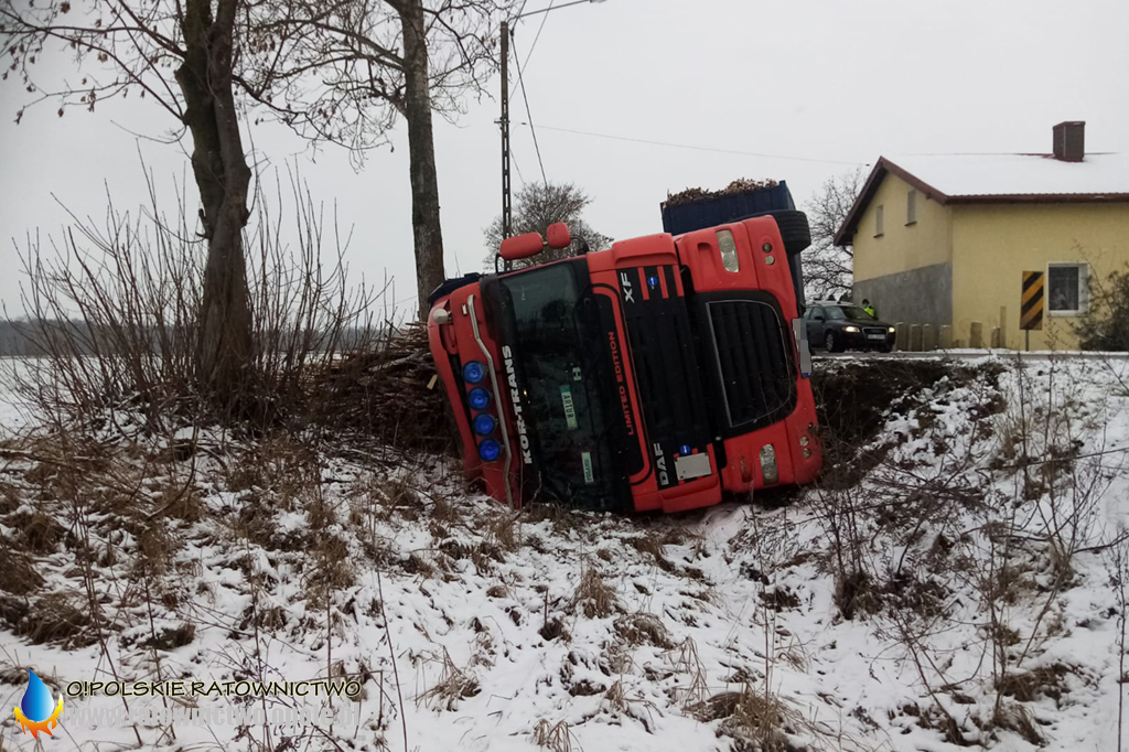 Kierujący dafem próbował jeszcze uniknąć zderzenia i wjechał do rowu. W wyniku tego samochód ciężarowy przewrócił się na bok a przewożony ładunek wysypał się z kontenera.