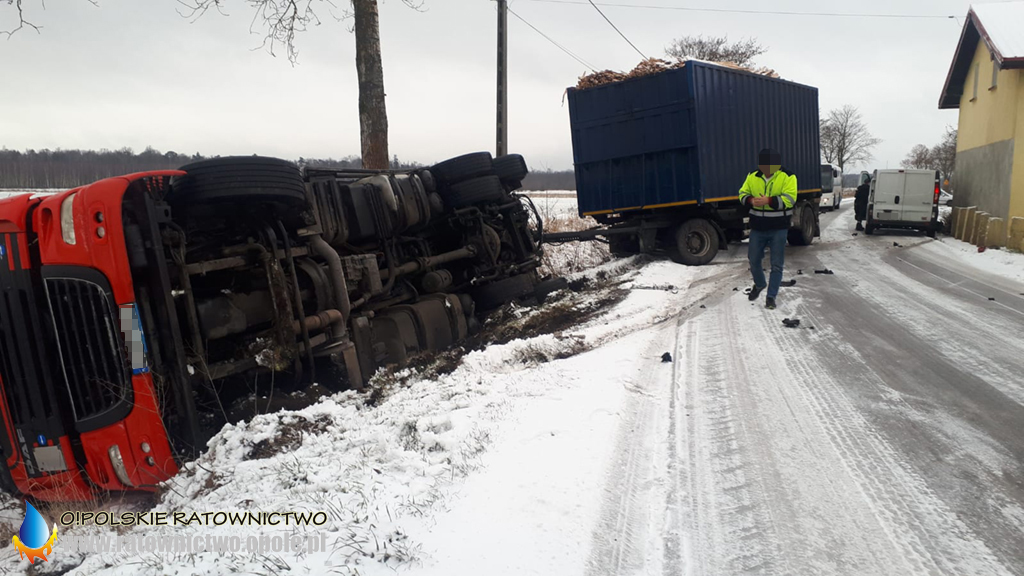 W środę 13 stycznia około godziny 9:10 w Brzezinkach (gm. Wołczyn) doszło do kolizji samochodu ciężarowego oraz dostawczego busa.