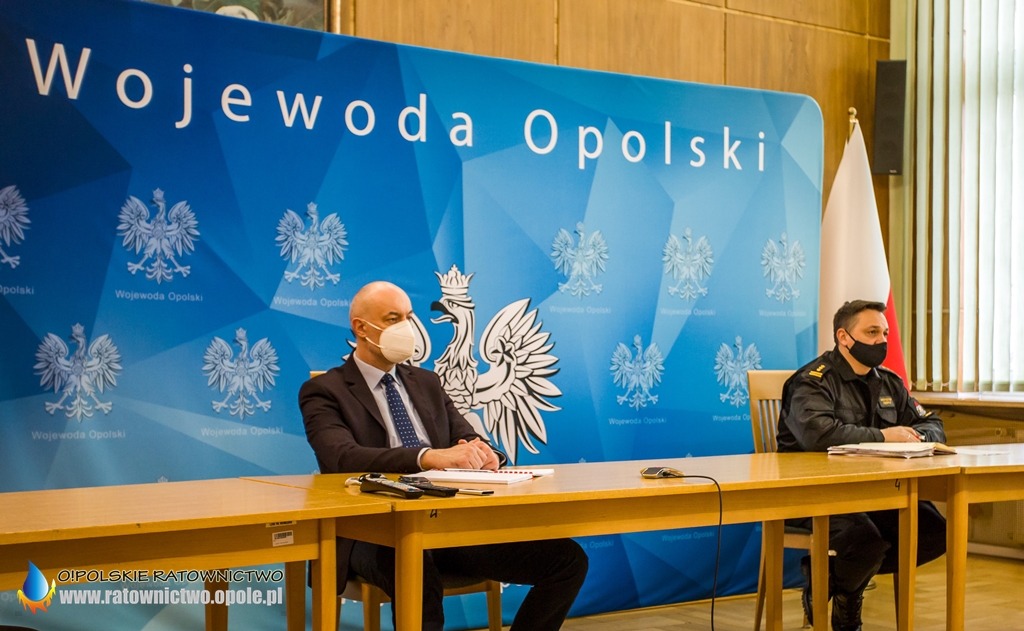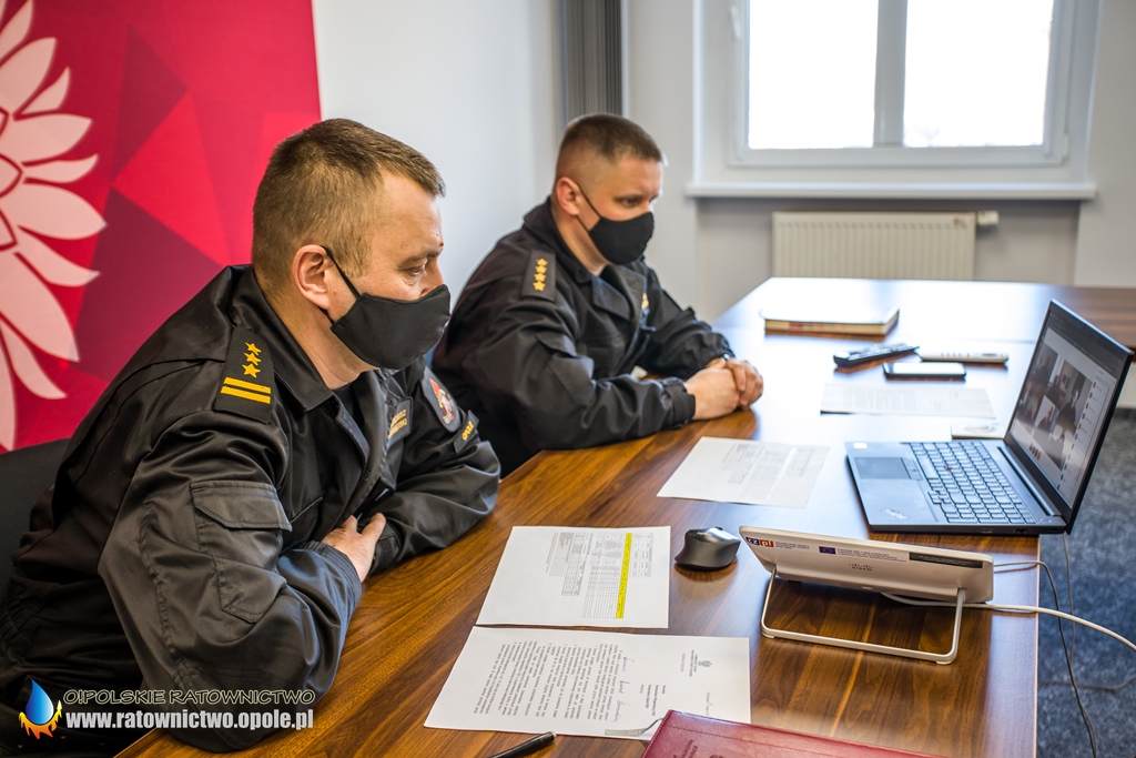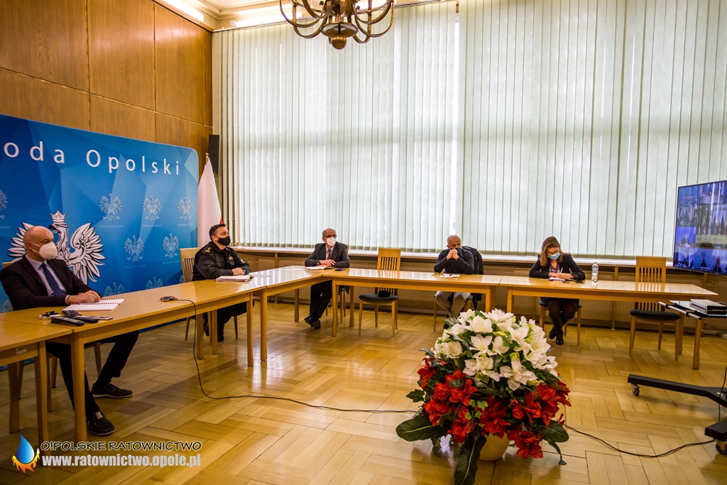 W spotkaniu w formie wideokonferencji w Opolskim Urzędzie Wojewódzkim wziął udział Adrian Czubak Wojewoda Opolski wraz z st. bryg. Krzysztofem Kędrykiem Opolskim Komendantem Wojewódzkim PSP w Opolu.