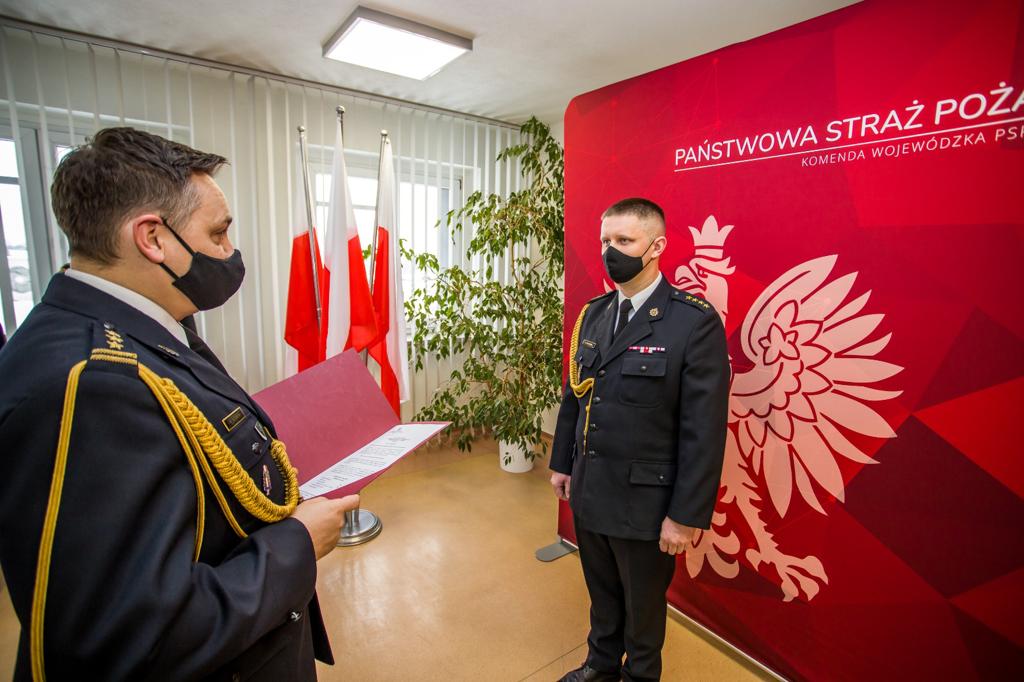 Decyzję o powołaniu na stanowisko Zastępcy Komendanta Powiatowego PSP w Kluczborku wręczył st. bryg. Krzysztof Kędryk Opolski Komendant Wojewódzki PSP w Opolu w obecności bryg. Wojciecha Nawary Zastępcy Opolskiego Komendanta Wojewódzkiego PSP w Opolu, st. kpt. Mariusza Stępnia Komendanta Powiatowego PSP w Kluczborku oraz funkcjonariuszy wydziału operacyjnego KW PSP w Opolu.