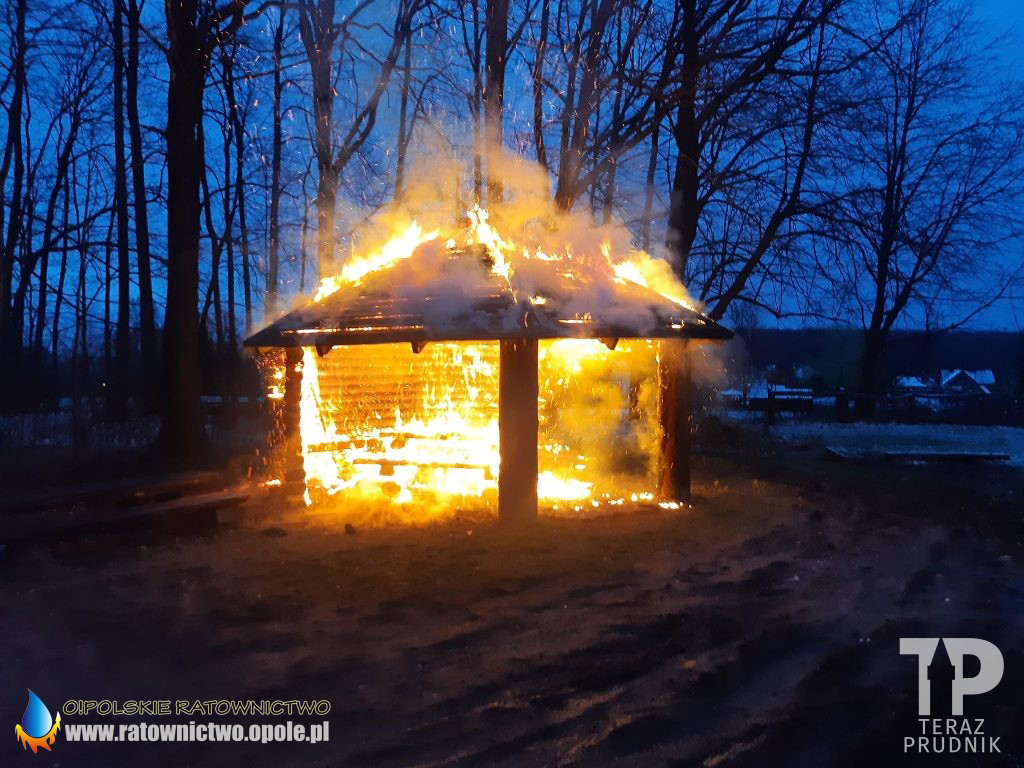 Nieznany sprawca podpalił drewnianą wiatę, która należała do Nadleśnictwa Prudnik.
