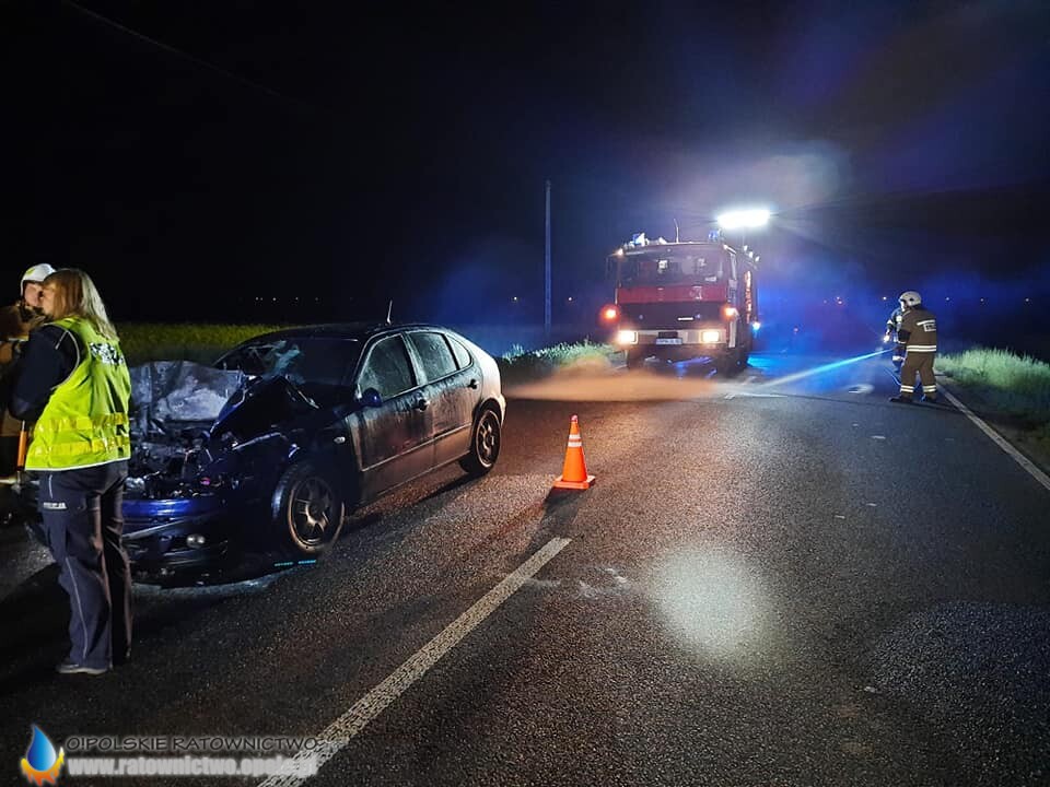 Ze wstępnych ustaleń mundurowych wynika, że kierujący seatem najprawdopodobniej nie dostosował prędkości do warunków panujących na drodze w wyniku czego z impetem uderzył w tył jadącego ciągnika rolniczego z opryskiwaczem. Po uderzeniu samochodu osobowego w ciągnik auto stanęło w płomieniach, pożar jednak udało się szybko opanować.