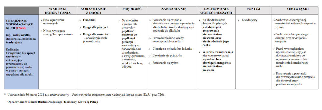 Poniżej załączamy tabelę – opracowaną w Biurze Ruchu Drogowego Komendy Głównej Policji – z wybranymi przepisami, która będzie pomocna dla nowo zdefiniowanych użytkowników.