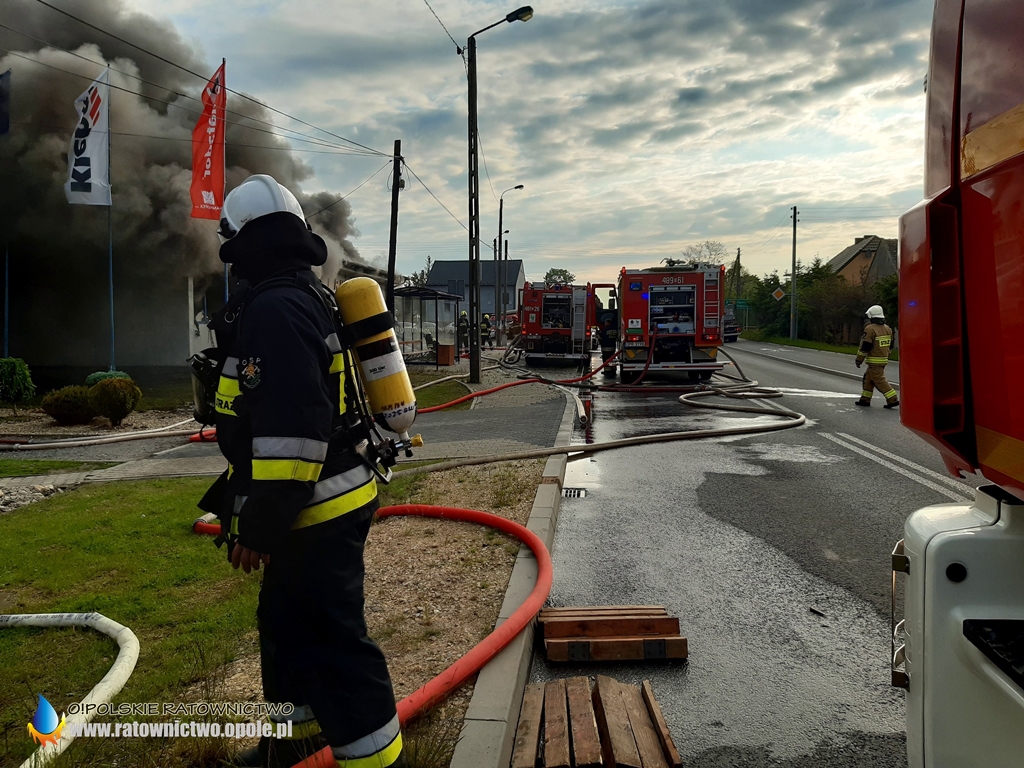 – Po przybyciu na miejsce, kierujący działaniem ratowniczym w trakcie rozpoznania ustalił, że pożarem objęty jest budynek warsztatu wulkanizacyjnego wraz z magazynem opon. W związku z rozwiniętym pożarem na miejsce zadysponowano kolejne zastępy jednostek ochrony przeciwpożarowej – informuje mł. asp. Łukasz Nowak oficer prasowy Opolskiego Komendanta Wojewódzkiego PSP.