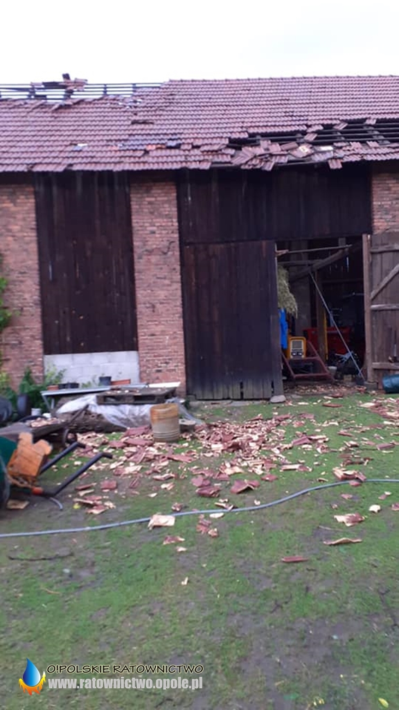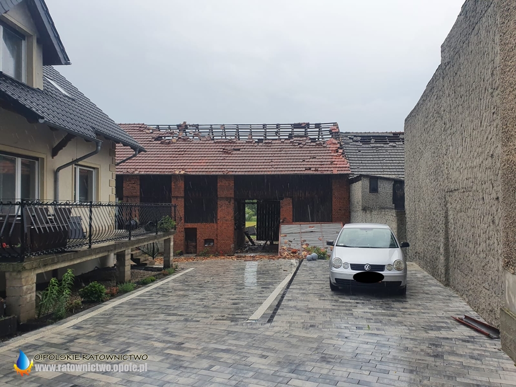 – Do najpoważniejszych zdarzeń doszło w powiecie kędzierzyńsko-kozielskim. W miejscowości Polska Cerekiew doszło do uszkodzenia części dachu budynku mieszkalnego o powierzchni około 50 metrów kwadratowych. W miejscowości Łany doszło do uszkodzeń dachów na trzech obiektach: dwóch stodołach oraz pustostanie. W jednym przypadku zerwany dach stodoły uszkodził pojazd na sąsiedniej posesji – informuje mł. asp. Łukasz Nowak oficer prasowy Opolskiego Komendanta Wojewódzkiego PSP.