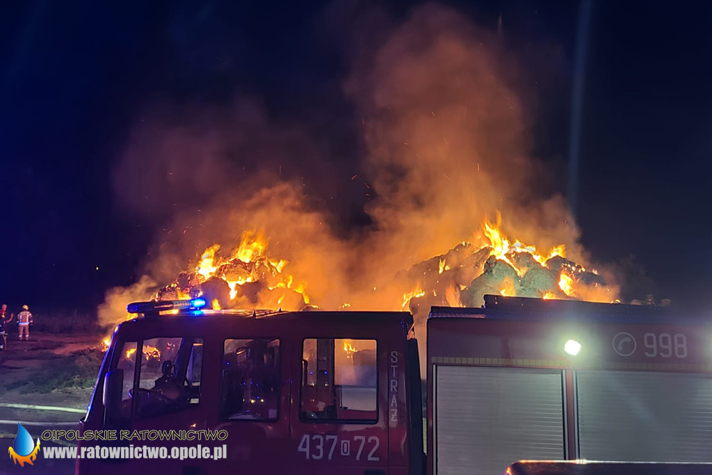 W niedzielę 20 czerwca około godziny 1 w nocy dyżurny Stanowiska Kierowania KP PSP w Kluczborku otrzymał zgłoszenie o pożarze sterty słomy w Krzywiźnie przy ulicy Rożnowskiej.