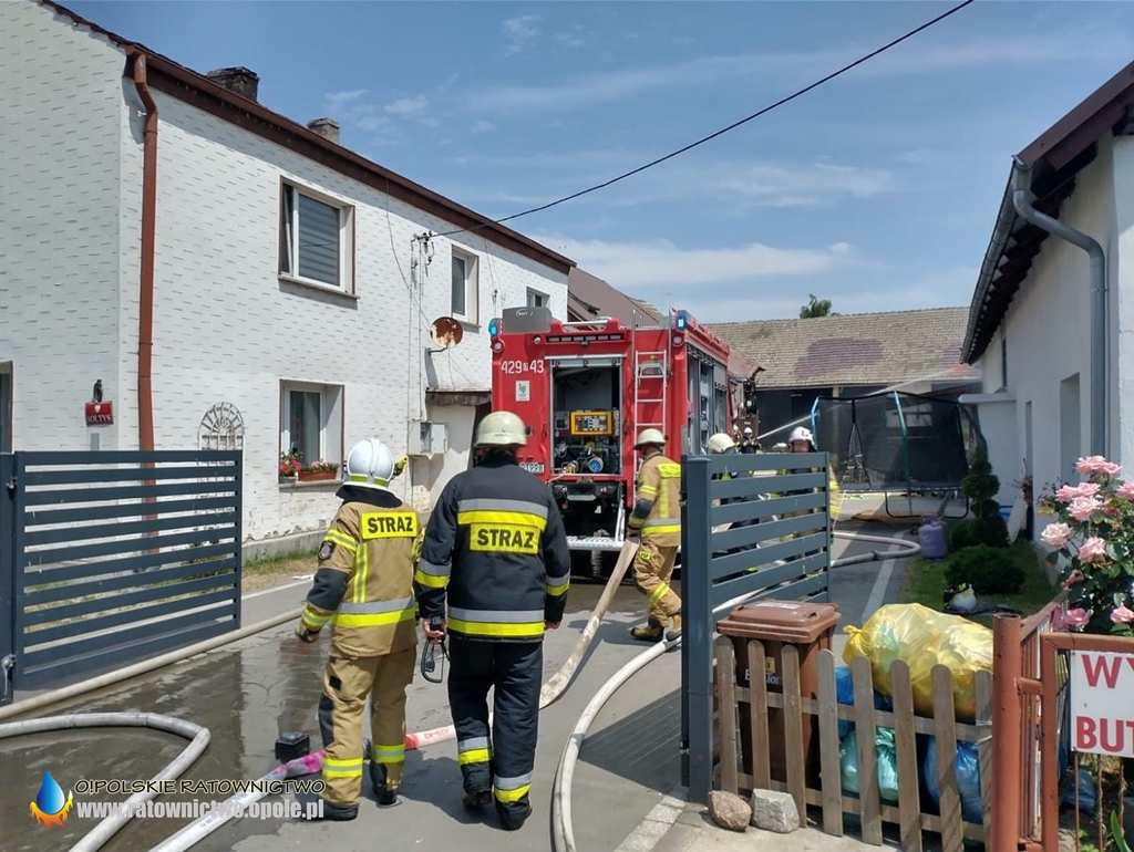 W wyniku pożaru jedna osoba została poszkodowana. To 18-latek, który remontował motocykl w pomieszczeniu gospodarczym w którym doszło do pożaru. Mężczyzna doznał poparzeń drugiego stopnia m.in. klatki piersiowej. Rannemu strażacy udzielili kwalifikowanej pierwszej pomocy następnie przekazali przybyłemu zrm.