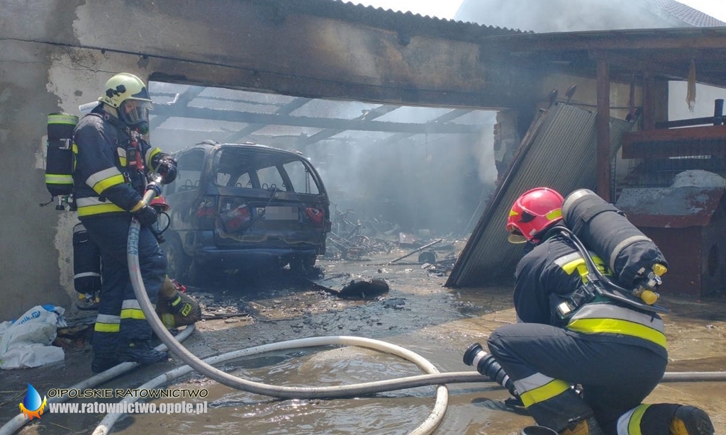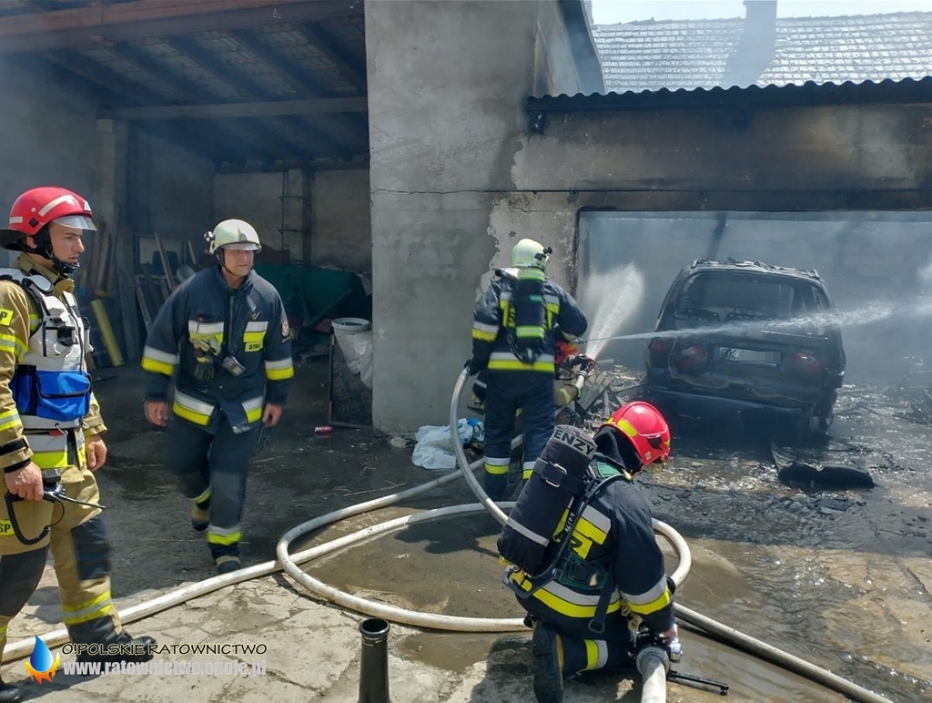 Wewnątrz znajdowały się też butle z gazem, strażacy wyciągnęli je na zewnątrz, gdzie zostały schłodzone w bezpiecznej odległości.