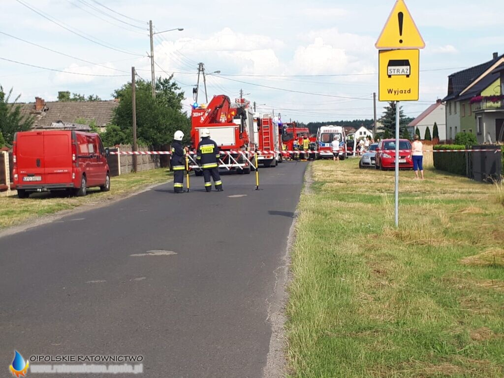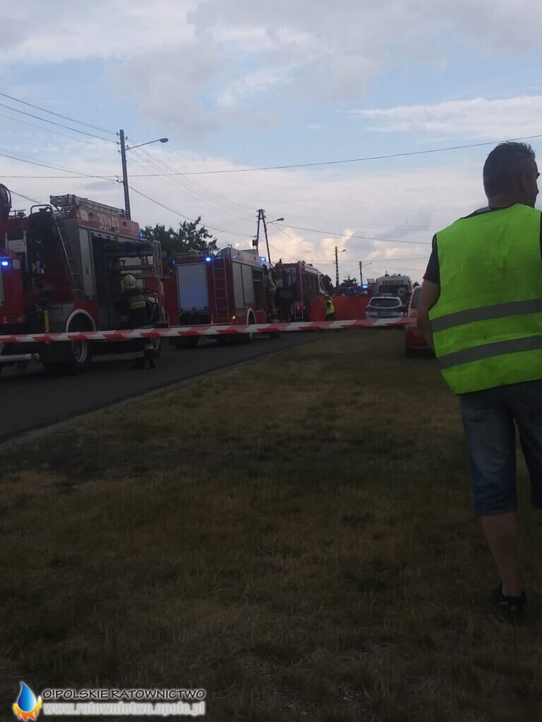 Na miejsce zadysponowano 2 zastępy z JRG 1 Opole, po jednym zastępie z OSP Krasiejów, OSP Schodnia, OSP Krzyżowa Dolina, ZRM, policję oraz śmigłowiec Lotniczego Pogotowia Ratunkowego (Ratownik 23).