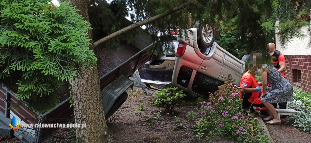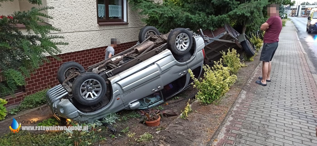Po dojeździe na miejsce zdarzenia i rozpoznaniu okazało się, że kierująca Suzuki Vitara z przyczepą na łuku drogi straciła panowanie nad pojazdem, zjechała z jezdni i dachowała kończąc swoją podróż na prywatnej posesji.