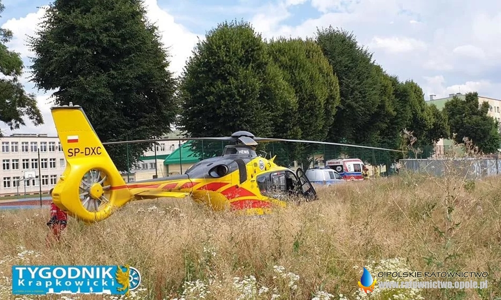 Do zdarzenia zadysponowano zastęp straży pożarnej z JRG Krapkowice, zespół ratownictwa medycznego, śmigłowiec Lotniczego Pogotowia Ratunkowego Ratownik 23 HEMS Opole i patrole policji.
