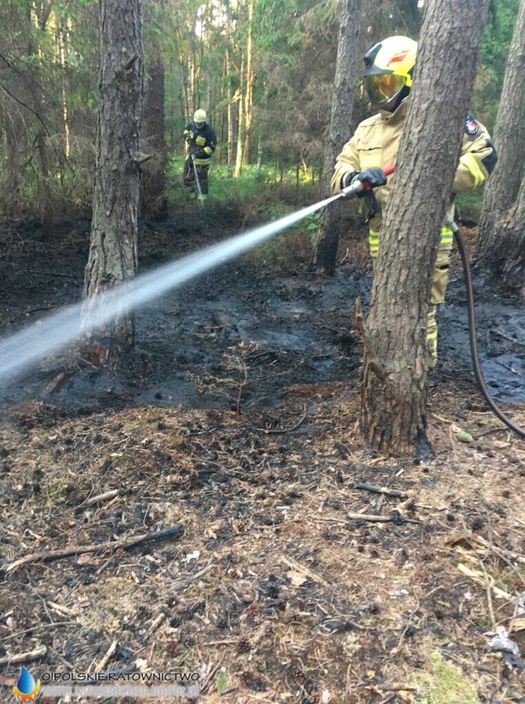 Po przyjeździe zastępów na miejsce zastali palącą się ściółkę w lesie, zadaniem strażaków było podanie prądu wody na tlący się las. Na szczęście pożar nie był duży i udało się go szybko opanować.