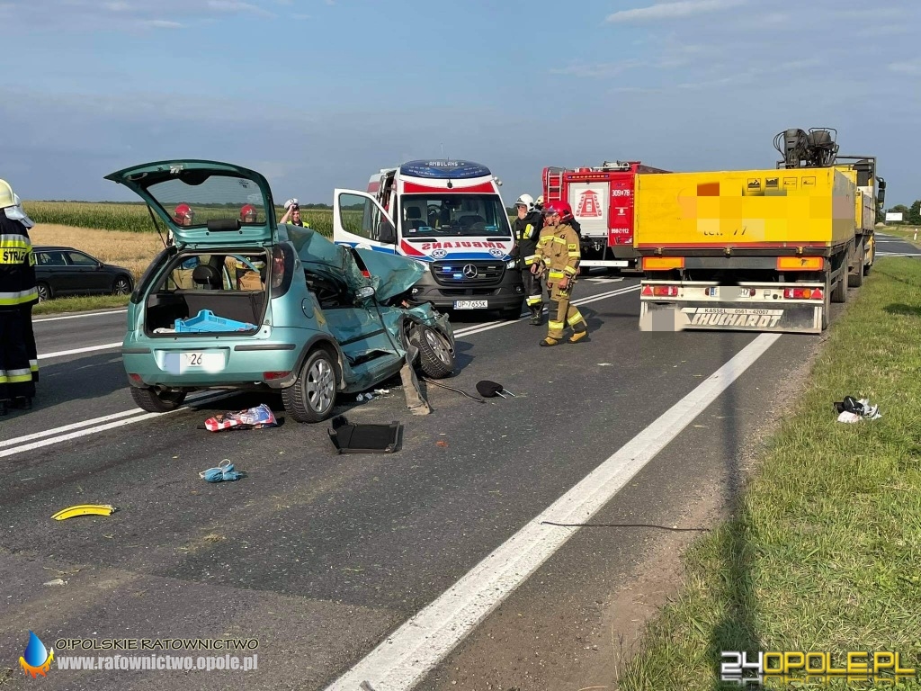 W wyniku wypadku 28-letni kierowca opla corsy w ciężkim stanie został zabrany drogą powietrzną do Uniwersyteckiego Szpitala Klinicznego w Opolu.